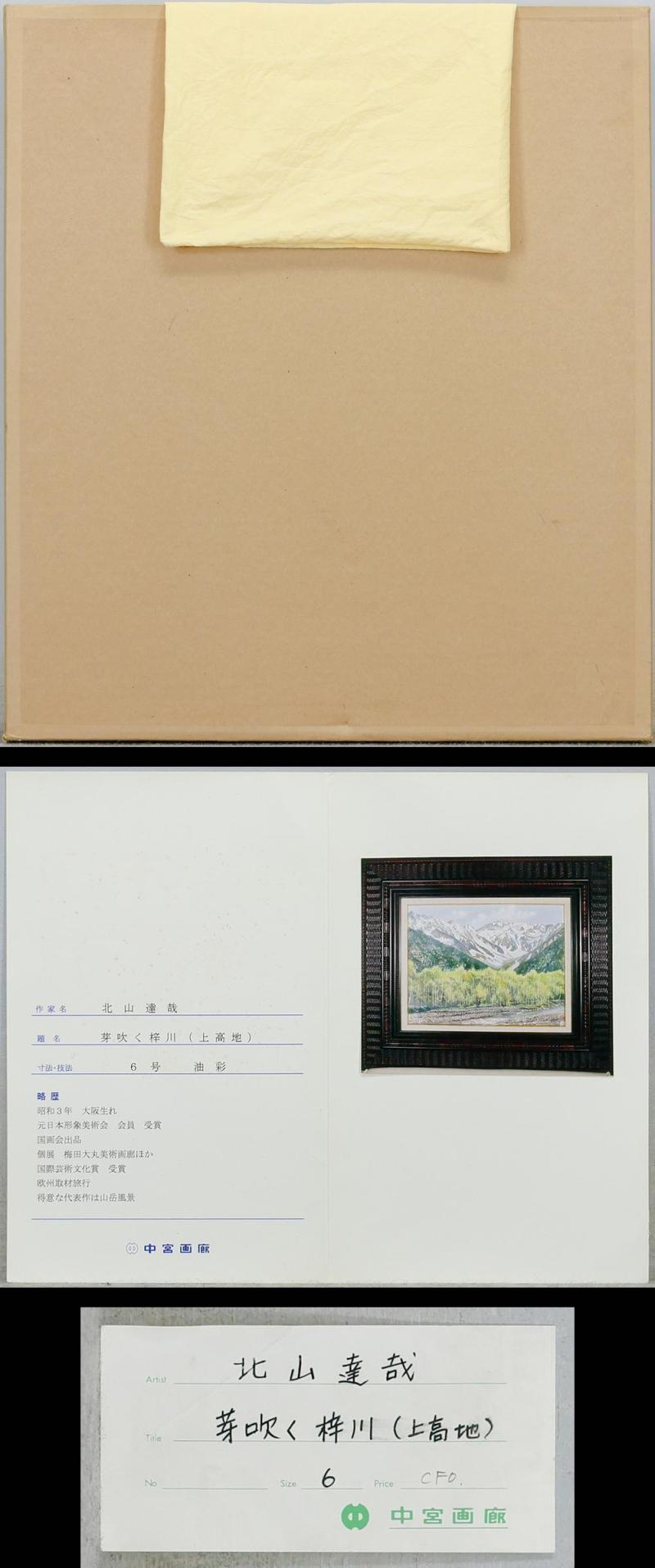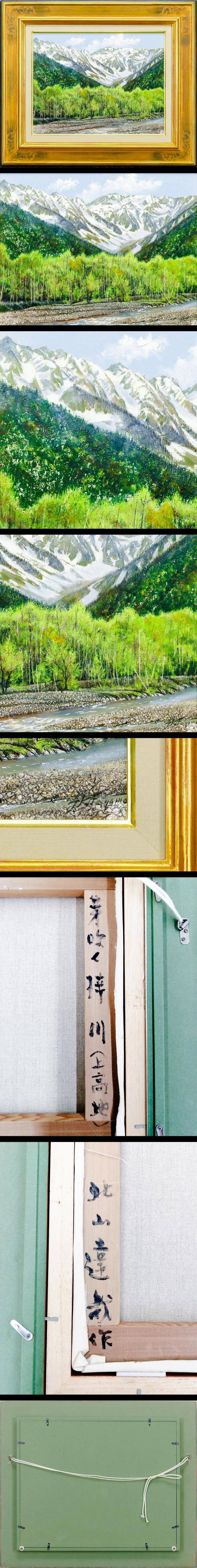 【真作】【WISH】北山達哉「芽吹く梓川(上高地)」油彩 6号 証明書付 ◆雪山を背景に芽吹く若葉と清流 〇ヴィラージュの会 #25093202