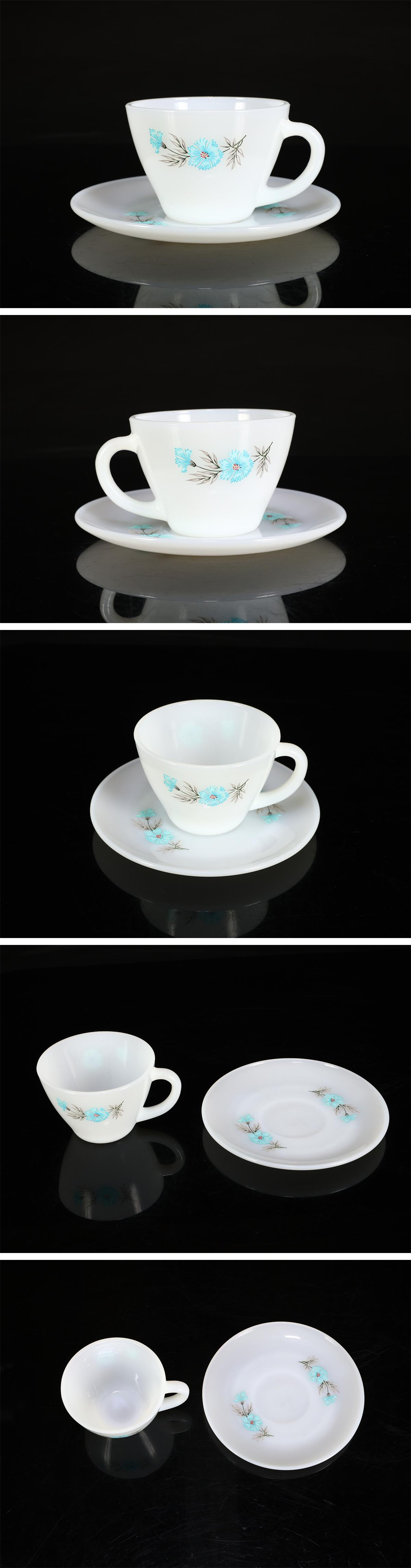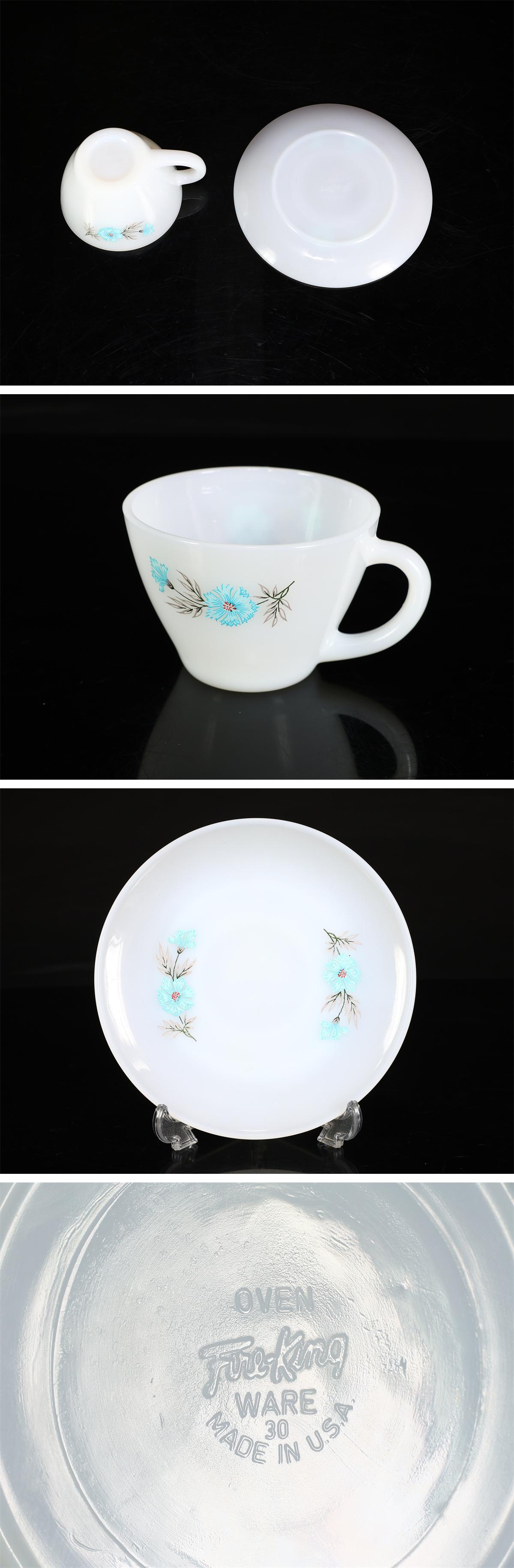 【吉】CN102 ファイヤーキング 【FIRE KING】 乳白ガラス 小花紋 カップ&ソーサー 1組 2点セット/美品!