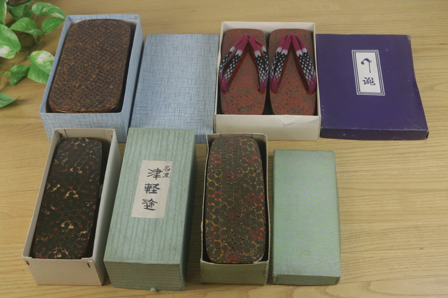 【津軽塗】下駄4点セット げた 履物 和装 伝統工芸 花緒付きは1点のみ(全長225~240mm) 管:Z4604
