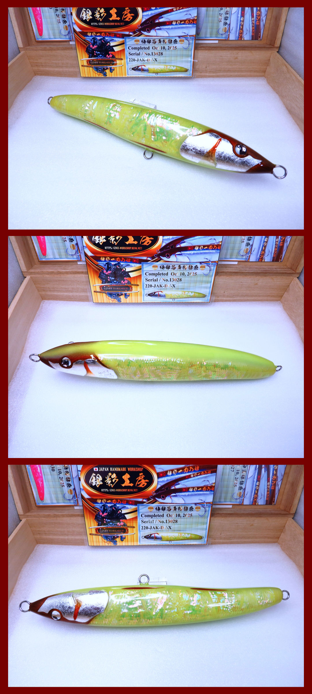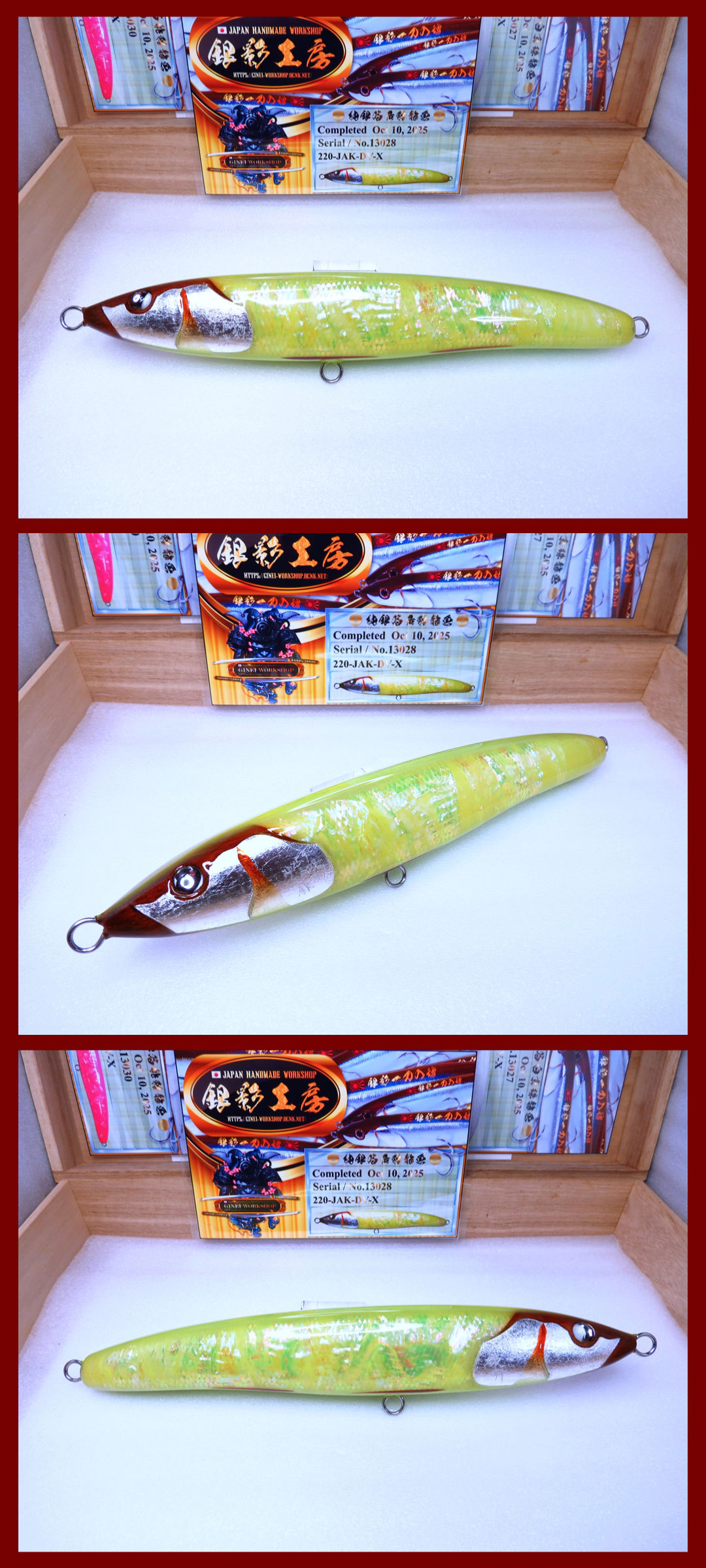 最高級の木材をルアー材質に銀箔や金箔をベースにした様々なシェルを使用して究極のルアーを30年以上にわたり製作販売しております。