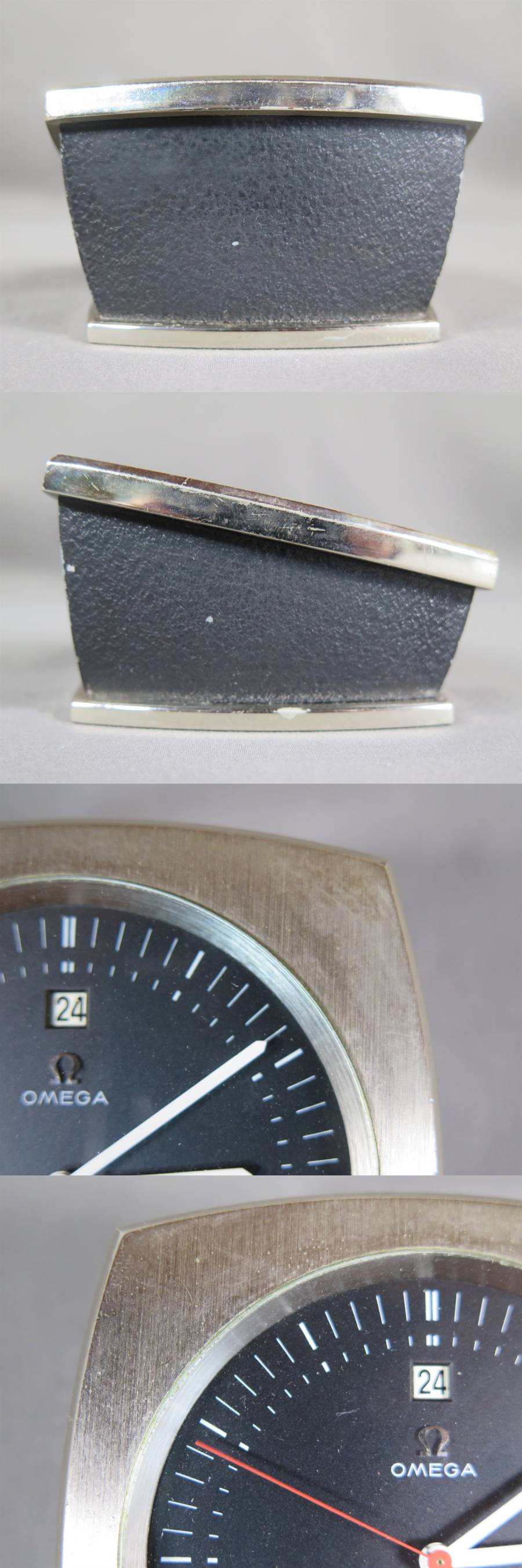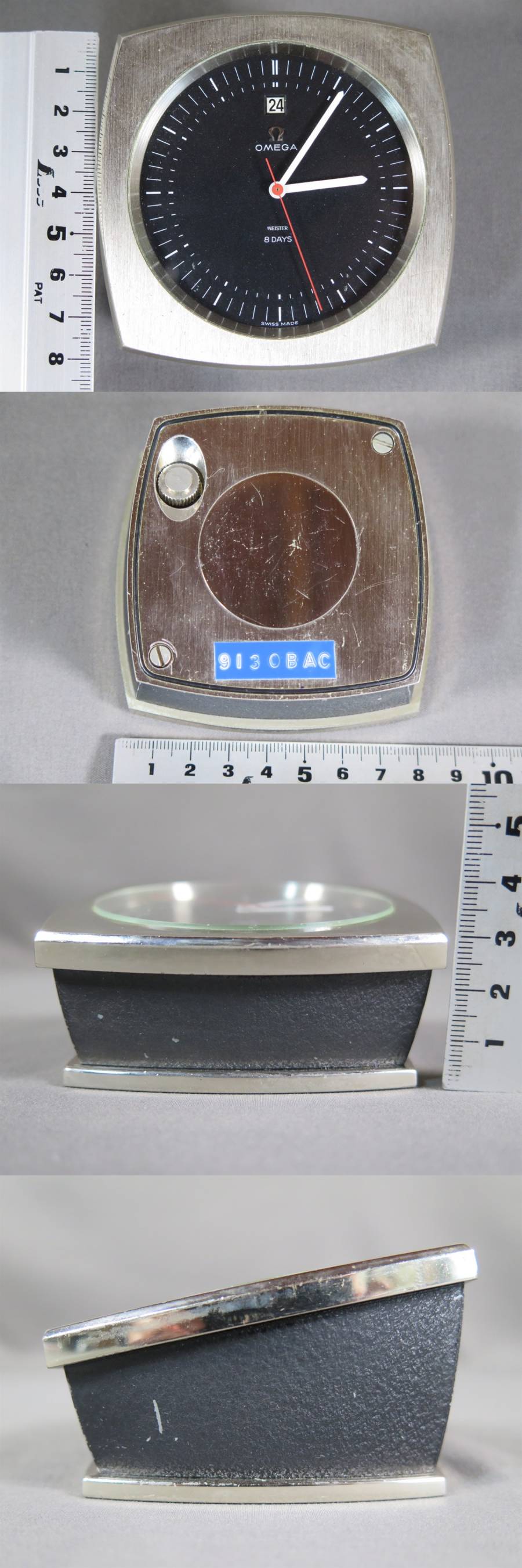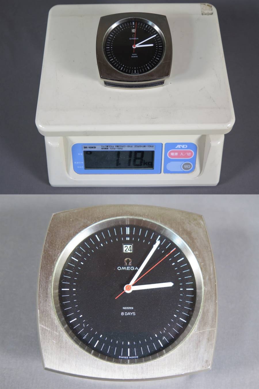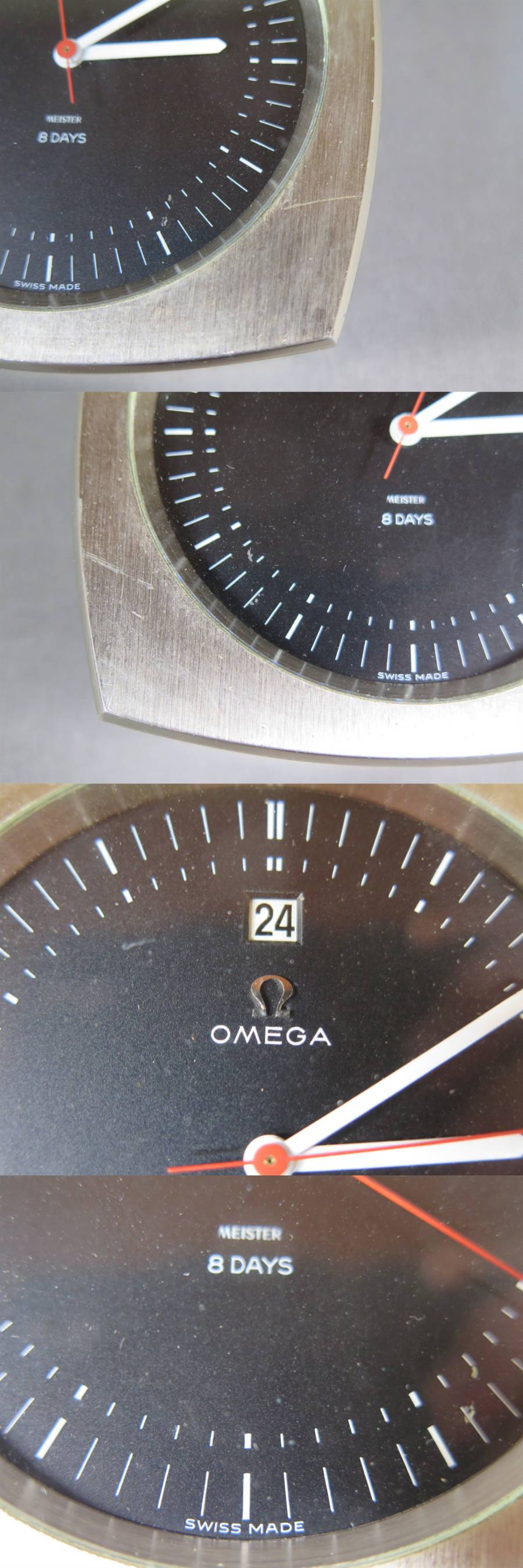 珍品【動作確認】オメガ 手巻き 卓上時計 シルバー×ブラック MEISTER 8DAYS カレンダー付 スイス製★OMEGA SWISS MADE 置時計 銀×黒