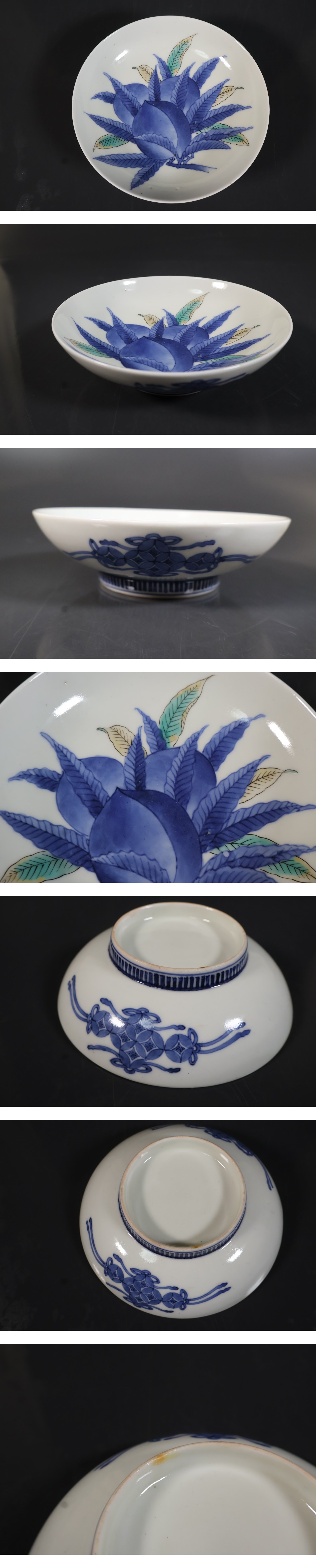 【和】(A3443) 時代古作 古鍋島 色絵鍋島桃図皿 色鍋島