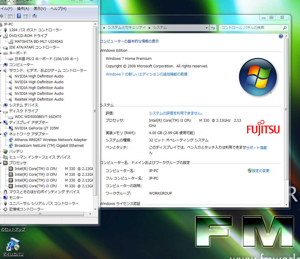 18.4” 大画面 迫力あるサウンド 富士通 FMV-BIBLO NW/G90 Core i3-330M/4GB/500GB/Blu-ray/GeForce GT335M/1920x1080/無線/リカバリ/2230