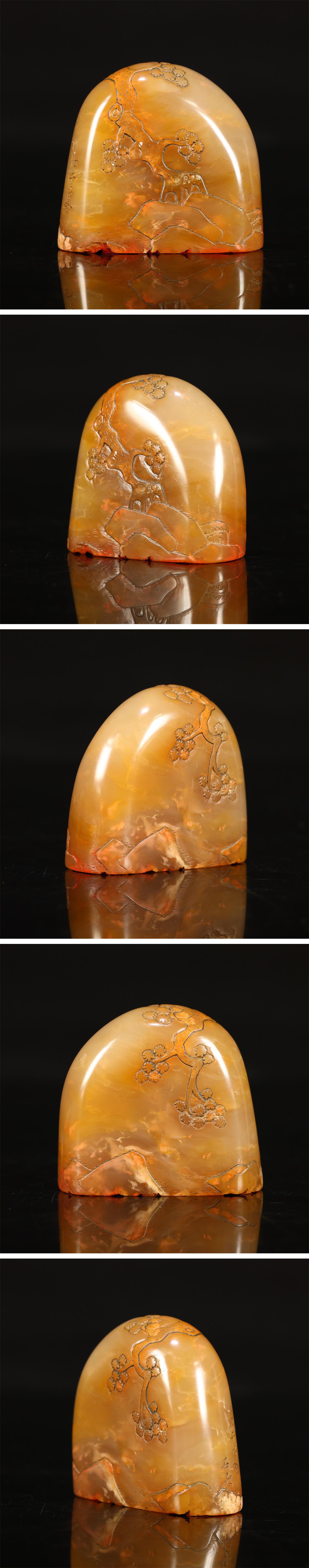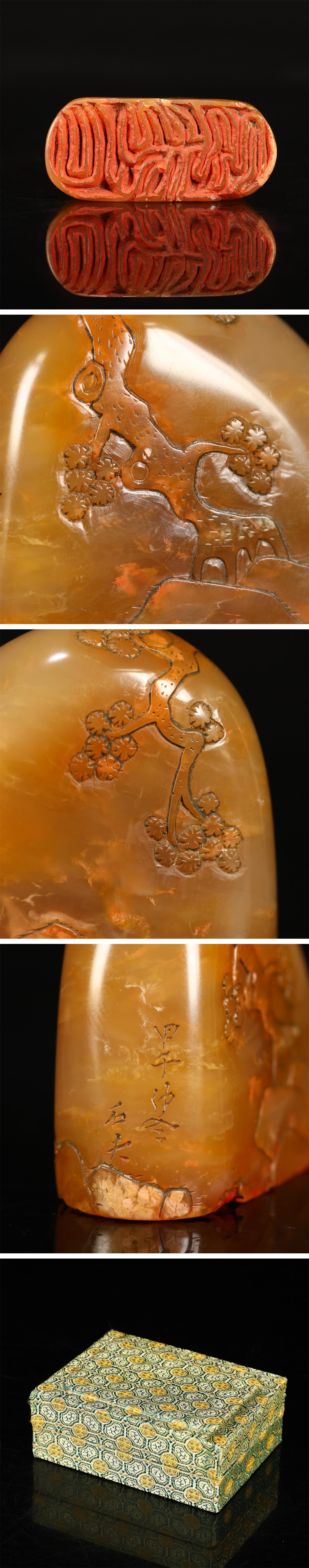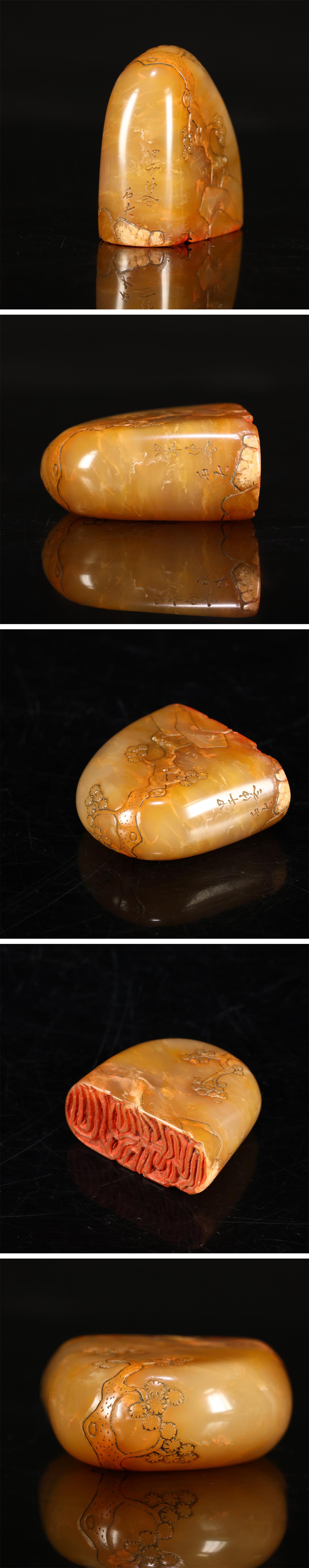 【吉】IB230 唐物 石夫刻 寿山石 【田黄石】 印材 印章 重62g/箱付 美品!