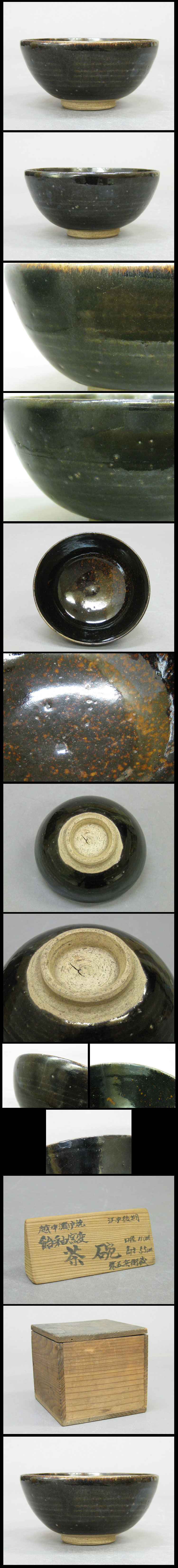 【心庵】江戸期 越中瀬戸焼 飴釉窯変/茶碗 付箱 茶道具 B755