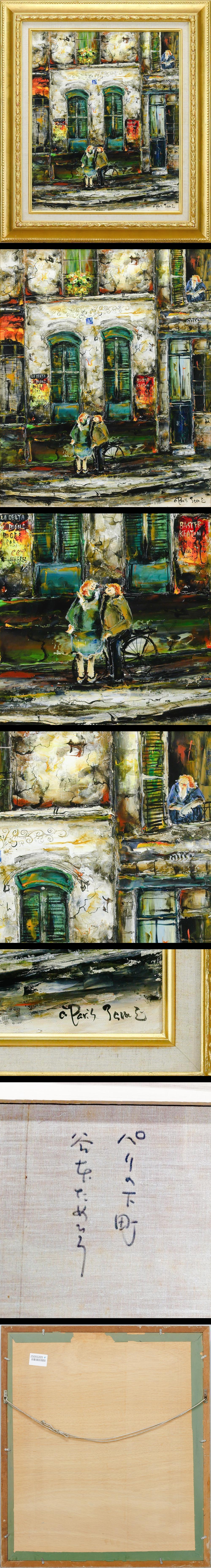 【真作】【WISH】谷本ためひろ「パリの下町」油彩 12号 大作 ◆恋人が寄り添うパリ街角 〇パリ風景人気画家 元新槐樹社会員 #25093205