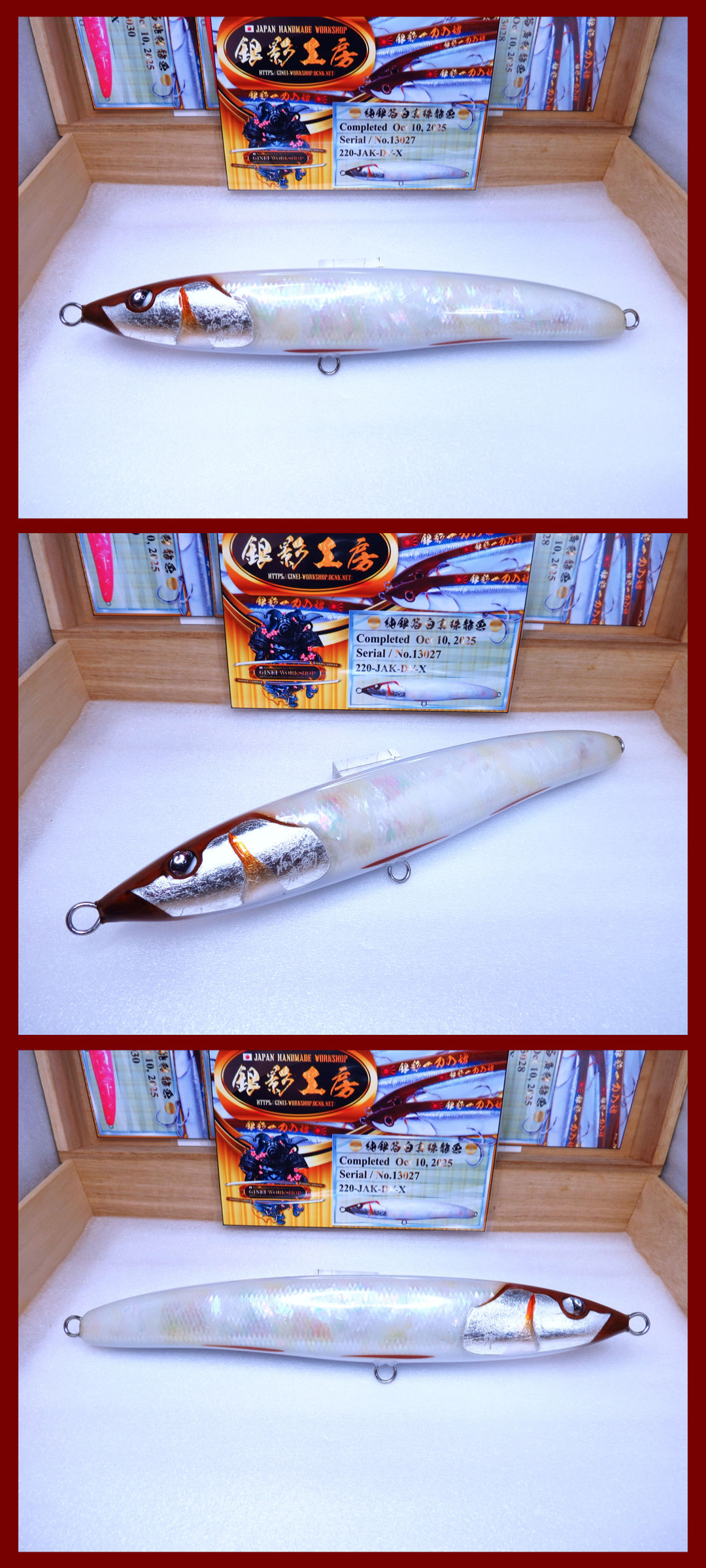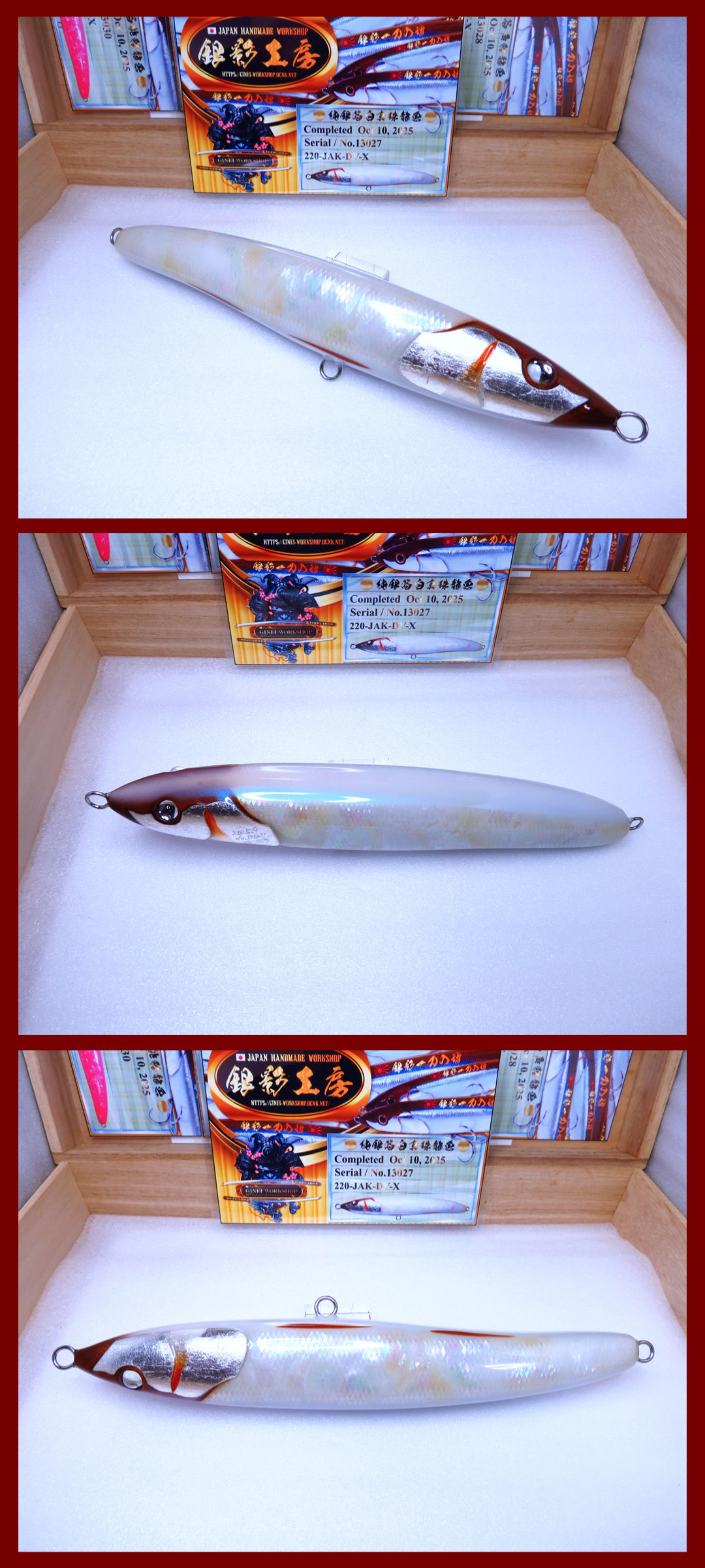 最高級の木材をルアー材質に銀箔や金箔をベースにした様々なシェルを使用して究極のルアーを30年以上にわたり製作販売しております。