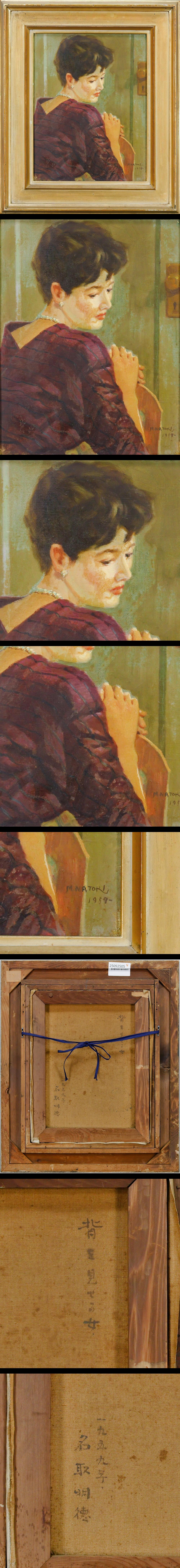 【真作】【WISH】名取明徳「背を見せる女」油彩 6号 1959年作 しなやかに振り向く麗しの女性 〇一水会会員 師:有島生馬 #25092505