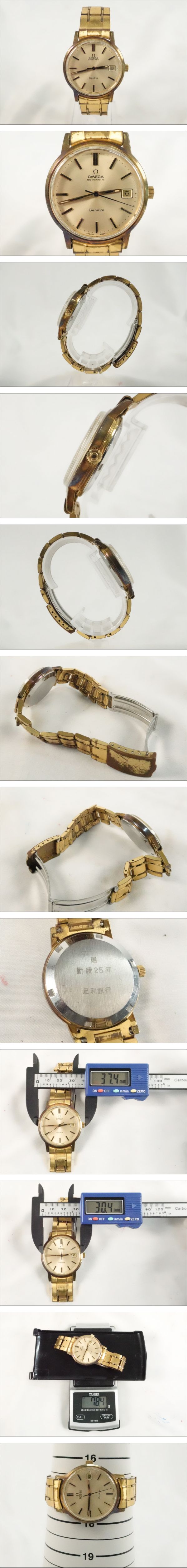 | ブランド名:OMEGA 商品名:腕時計 型番:不明 ベルト:社外 腕周り:画像にてご確認下さい。 総重量:画像にてご確認下さい。 サイズ:画像にてご確認下さい。 ムーブメント:自動巻き 付属品:無し 動作:稼働している確認ができました。    リューズを回して時間調整確認ができました。    リューズを24時間回して日付の変更は確認できました。    その他の操作は未確認となります。    長時間の動作確認は行っていないため、日差含め正常な動作かは分かりかねます。    ※あくまでも検品時の動作となりますので予めご了承下さい。 状態:譲り受けた商品の為、購入時期や使用頻度など詳細は分かりかねます。    傷や汚れがございます。全体にメッキ剥がれがございます。    裏蓋に永年勤続の刻印がございます。    中古品の為、フェイスや外観に傷やスレが見受けられます。    素人の為、ご質問いただいても回答できない場合がございますが、    画像を追加致しますので、欲しい写真があった場合ご質問頂ければと思います。    神経質な方のご入札はお控え下さい。目視でのご確認となります。    商品の状態に関しては画像にてご判断下さい。    ※オーバーホール歴は不明でございます。    ※裏蓋を外した画像がない商品は、裏蓋を外して内部の確認は出来ておりません。 ID:0312492025-891 弊社はインボイス登録事業者です。 登録番号:T8370001039877 ※※入札前に必ずお読みください※※ 説明文をよくお読みの上ご入札下さい。 画像に写っているものが全てになります。 商品の重さを量っているものに関しては多少の誤差がありますので、ご理解下さい。 商品の状態に関してはご自身でご判断の上、ご入札下さい。 あくまでも主観に基づく感想です。状態判断は画像にてお願い致します。 商品に対しどちらの情報が欲しいか分かりかねる部分もございますので、落札前にご質問頂ければと思います。 中古品の為、神経質な方のご入札はお控え下さい。 ご入札後の入札取り消しは出来かねます。 専門知識がなく、ご質問いただいても回答できない場合がありますが 気になる点がある方は入札前にご質問下さい。 素人による検品の為、見落としている場合もございます。 ご了承下さい。 ノークレーム・ノーリターンでお願いします。 | |||