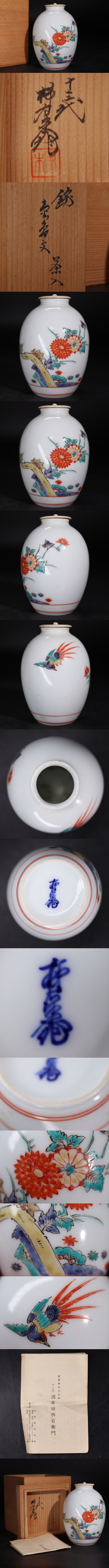 | 十三代 酒井田柿右衛門 作 錦 草花文 茶入 栞・共箱付 / 有田 名工 人間国宝 色絵 茶器 煎茶道具 .G2384 |