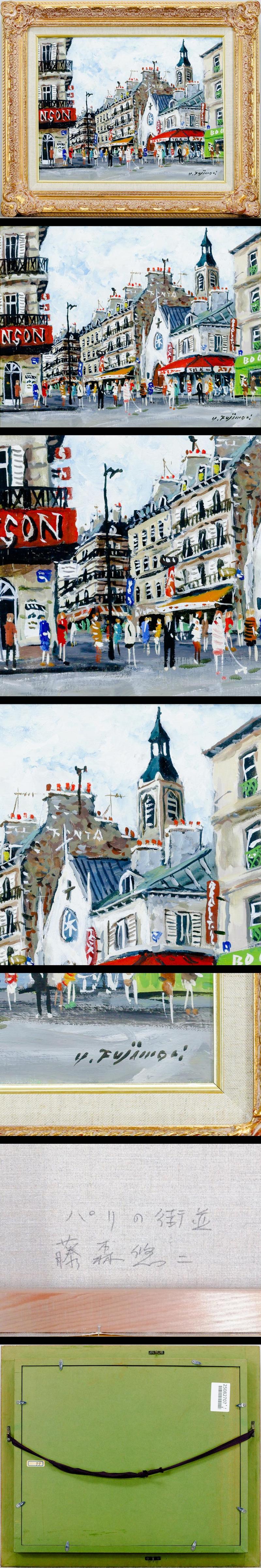 【真作】【WISH】藤森悠二「パリの街並」油彩 6号 ◆教会とカフェのあるパリ街角 〇パリ風景画家 元新彩会委員 個展三越他 #25082707