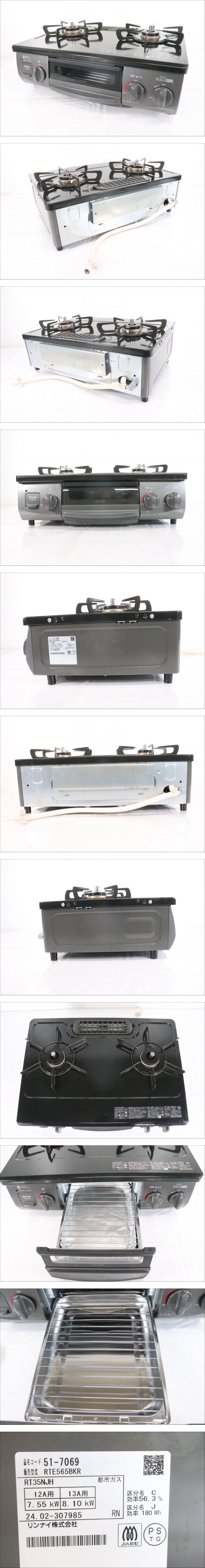 【美品】 Rinnai RTE565BKL リンナイ 2口 ガスコンロ ガステーブル 取扱説明書付き 都市ガス用 キッチン 家電 _JFE_C0925-F020