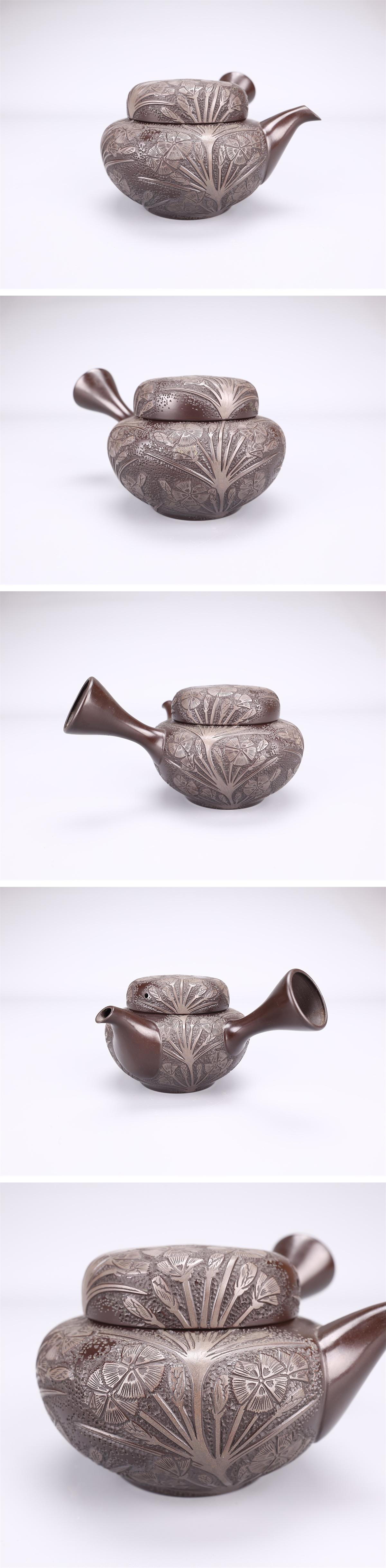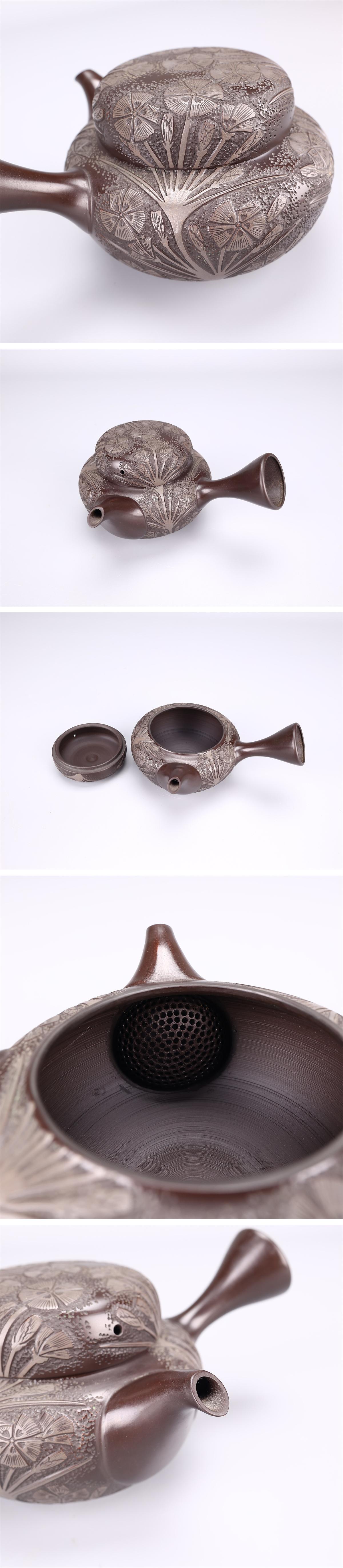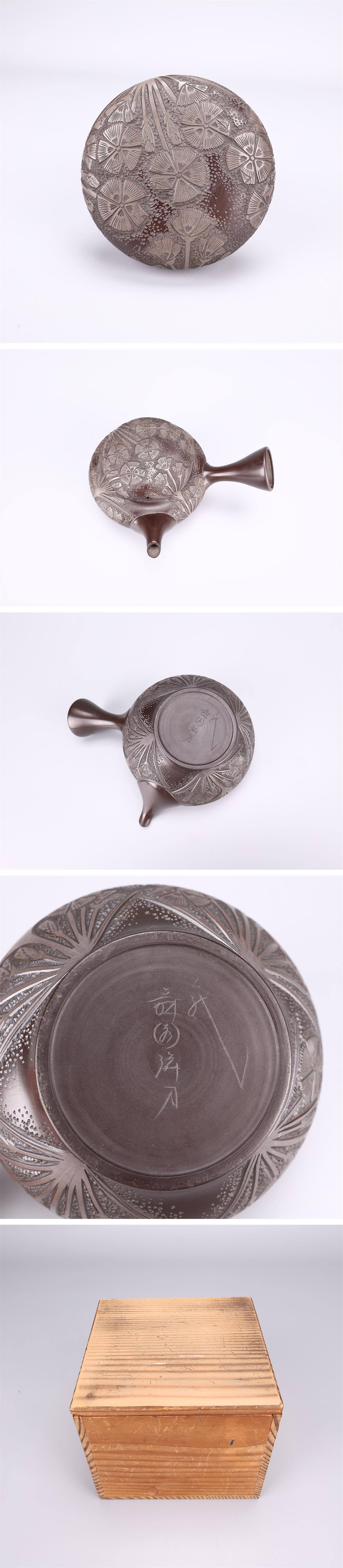 【吉】CN244 【二代 間野舜園】 常滑焼 草花紋 鍋形蓋 急須/合箱付 美品!