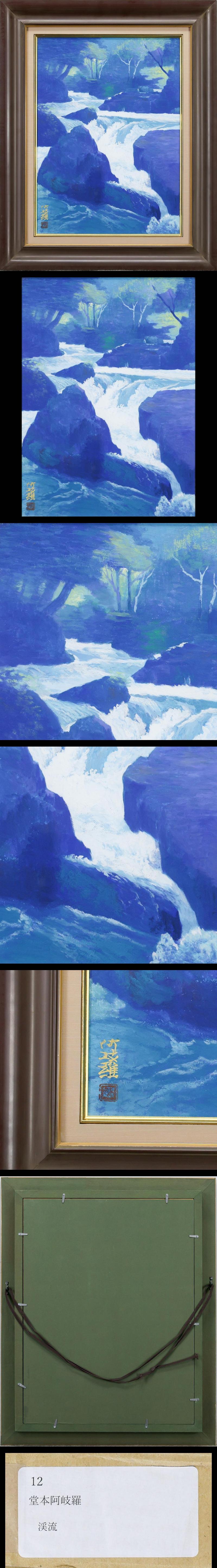 【真作】【WISH】堂本阿岐羅「渓流」日本画 8号 金落款 ◆青き瀬音に包まれる渓流 〇日展参与 伯父/師:堂本印象 京都出身 #25102380