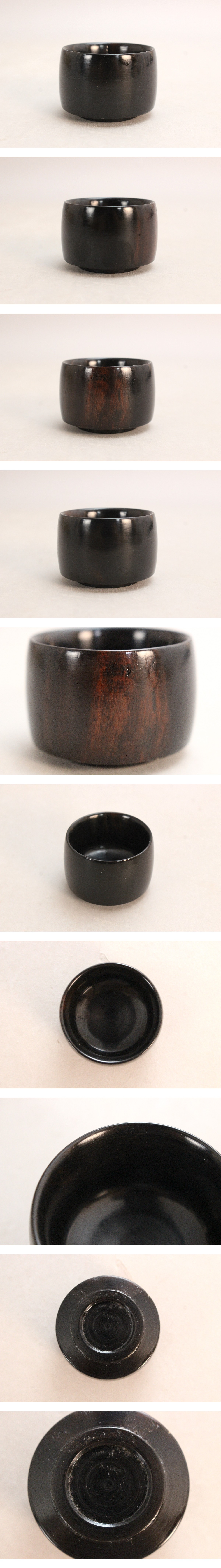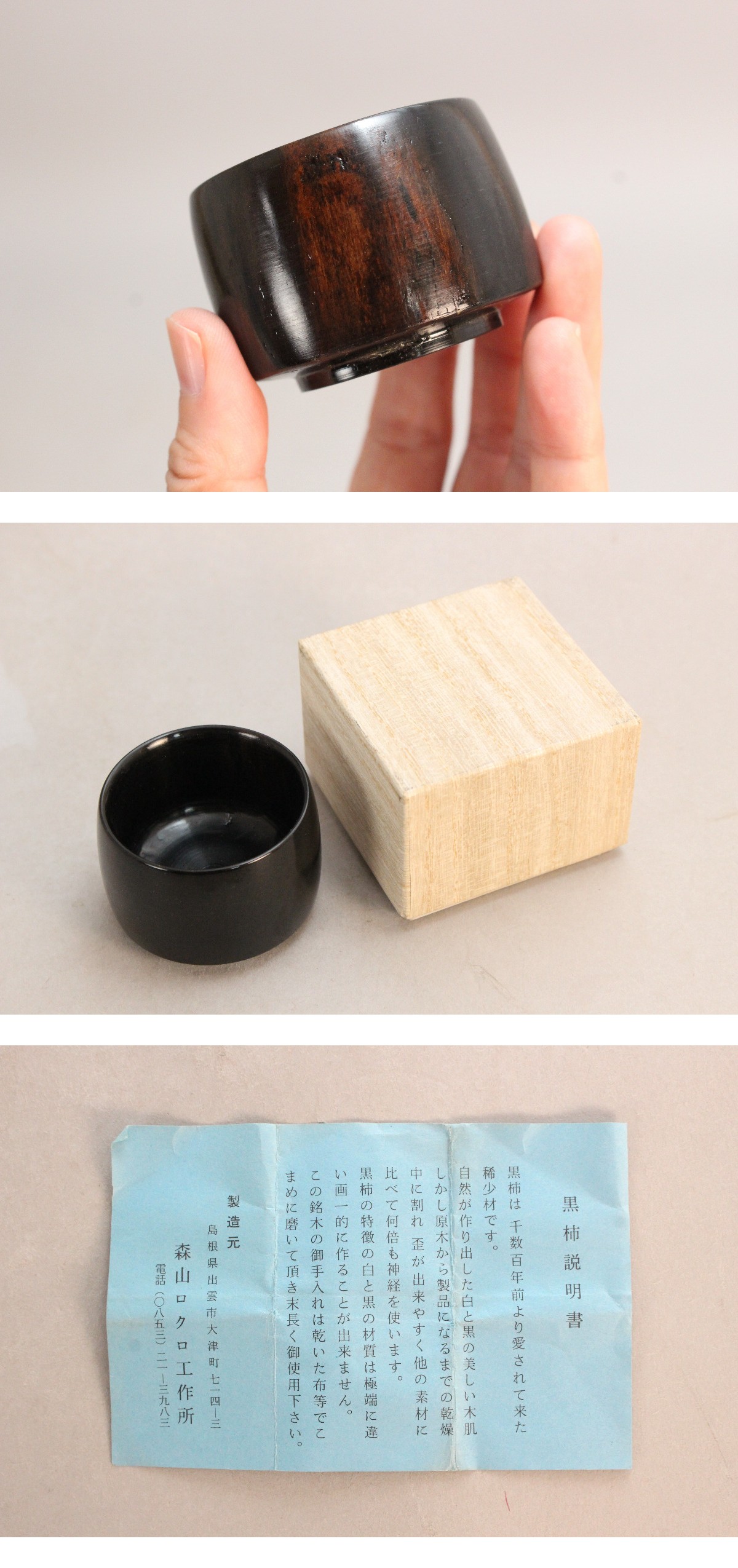 [160360]森山ロクロ工作所 黒柿 猪口 栞/紙箱付◆酒器/ぐい呑/盃/杯/木工/民芸/骨董/うぶ品