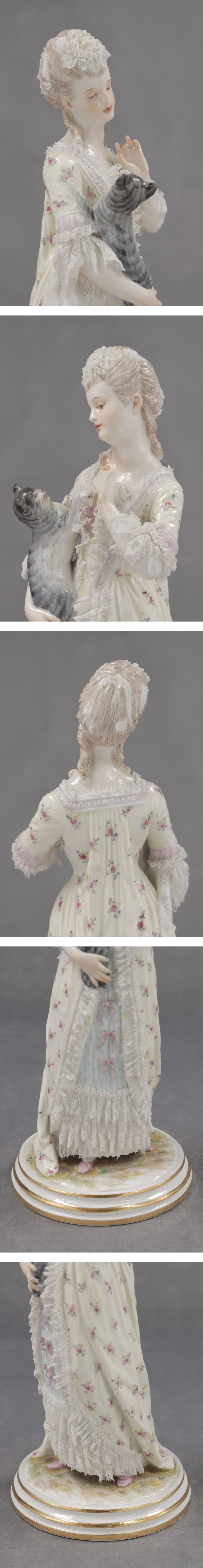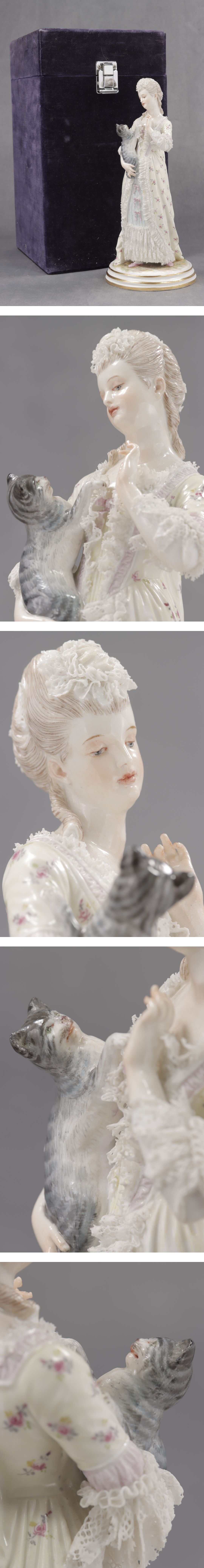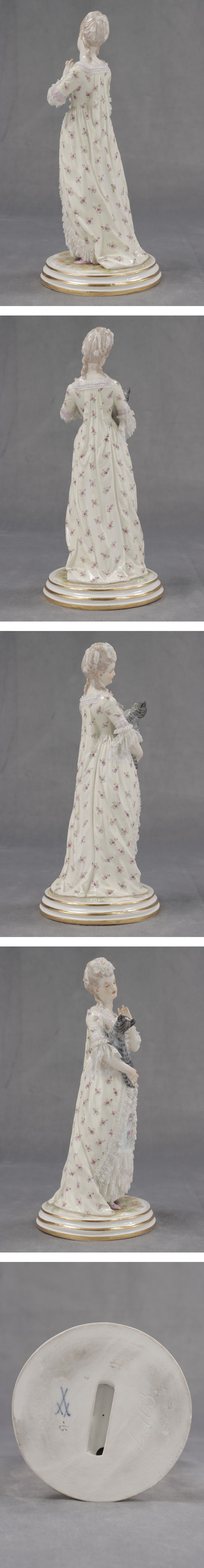 《西洋 陶器》 19世紀 Meissen マイセン人形 猫と少女 J.ウンガラー フィギュリン 磁器人形 陶器人形