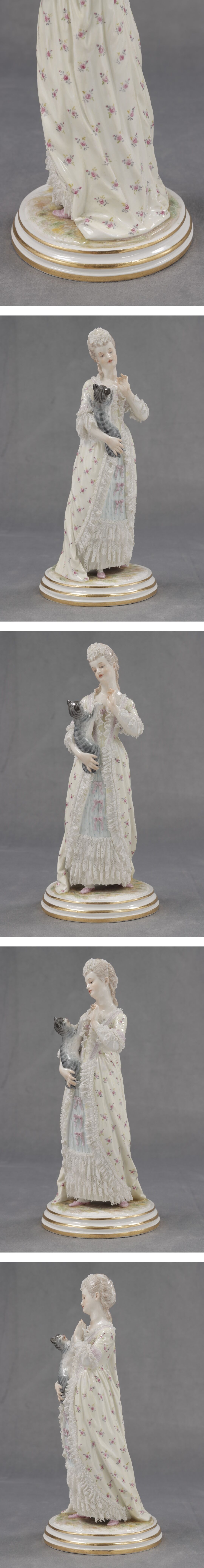 天地堂《西洋 磁器》時代物 19世紀 Meissen マイセン人形 猫と少女 J.ウンガラー フィギュリン 磁器人形 陶器人形