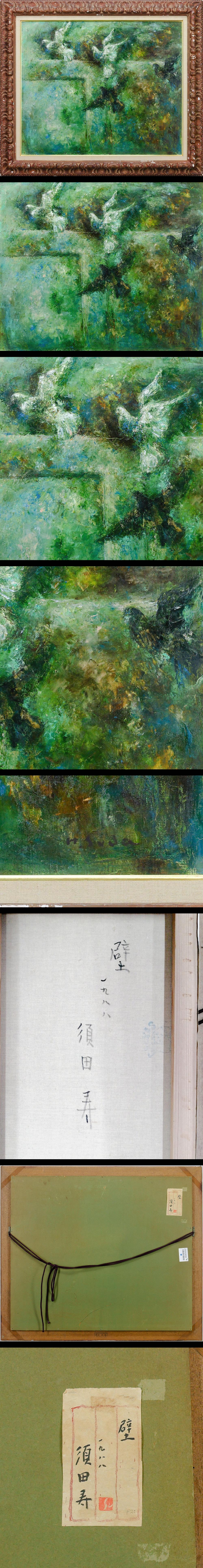 【真作】【WISH】須田寿「壁」油彩 20号 大作 1988年作 共シール ◆緑彩に舞う、幻想的な白鳩名画 〇芸術選奨文部大臣賞 #25092850