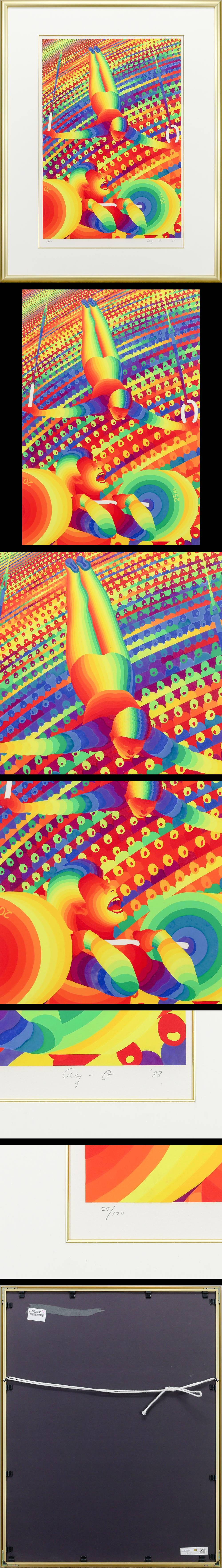 【真作】【WISH】靉嘔「室内競技A」シルクスクリーン 15号大 大作 1988年作 直筆サイン 〇虹の画家 #25093146
