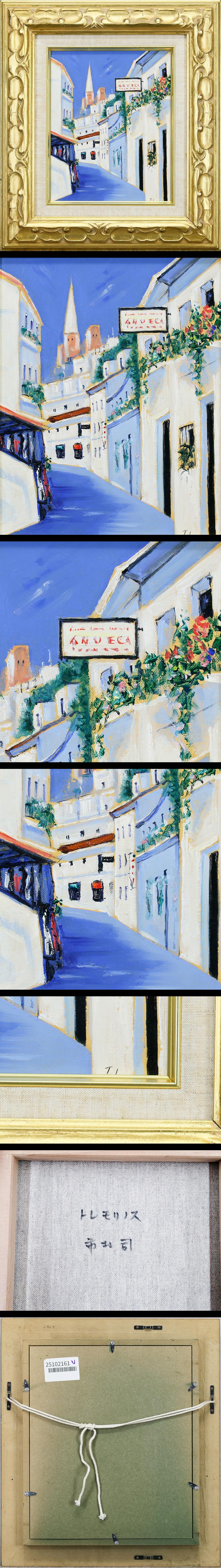 【真作】【WISH】市村司「トレモリノス」油彩 3号 陽光差す青と白の街角 〇象元会運営委員 新潟県長岡美術館蔵 京都府出身 #25102161