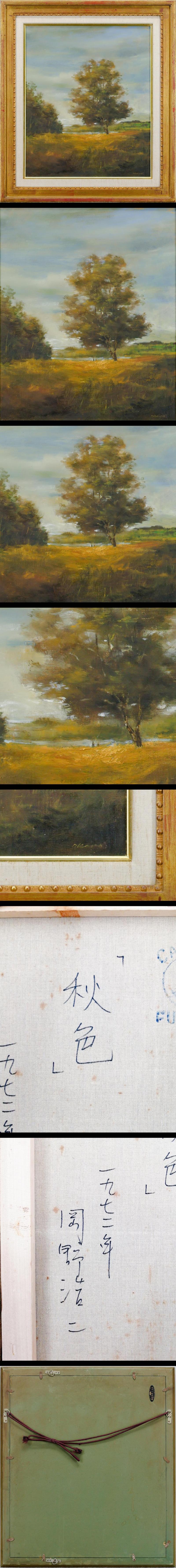 【真作】【WISH】岡野浩二「秋色」油彩 8号 1972年作 ◆風薫る野に佇む一本の木 〇リアリズム人気画家 三栖右嗣らと活躍 #25093217
