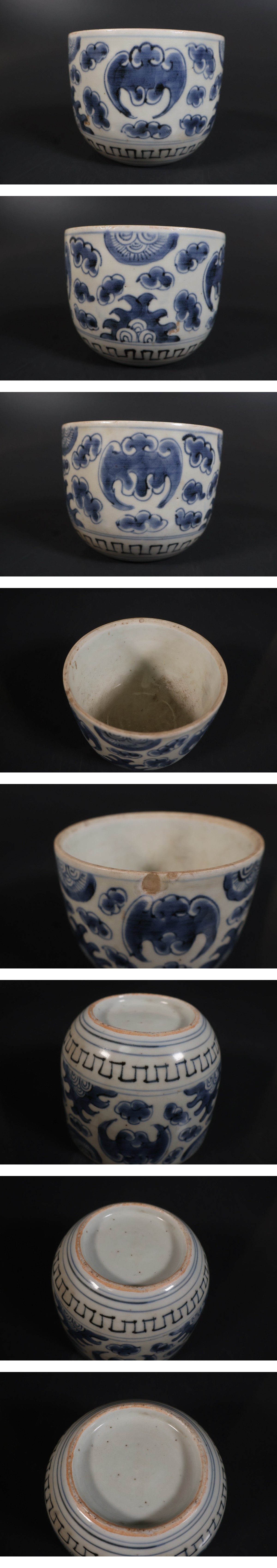 【和】(A3564) 時代古作 江戸 李朝手 古伊万里染付蝙蝠文鉢 茶碗 李朝分院