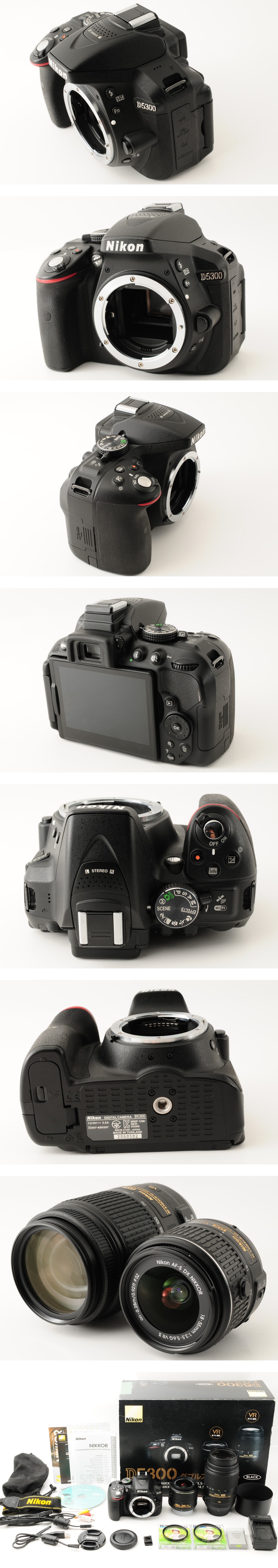 気持ちよくお使い頂けます。 ■ 動作チェック 各種動作確認済みです。 安心してお使い頂けます。 万が一記載以外不具合があった場合 返品対応させて頂きます。 安心してご購入頂ければと思います。 ● お届けする内容 ・カメラ本体 ・レンズ AF-S DX NIKKOR 18-55mm F3.5-5.6G VR II ・レンズ AF-S DX NIKKOR 55-300mm F4.5-5.6G ED VR ・バッテリー ・充電器 ・元箱 ・ストラップ ・レンズポーチ ・レンズフード ・レンズフィルター×2 ・ボディキャップ ・フロントレンズキャップ ・リアレンズキャップ×2 ・CD-ROM ・USBケーブル ・AVケーブル | 支払詳細・発送詳細 | | ● 支払方法 ・Yahoo!かんたん決済 ※ 代引き・領収書発行は対応しておりません。 ● 発送について 精密機械ですので厳重梱包の上、お支払いの確認後48時間以内に発送いたします。 (土日祝を除く) 商品はゆうパックでの発送となります。 送料は、全国一律1200円 となります。 ※北海道、沖縄、離島は+500円 | 安心サービス | | お顔の見えない取引で不安な点もあると思いますが誠心誠意お取引させていただきますのでご安心ください。 お客様に安心して気持ちよくお取引して頂くため以下のお約束をいたします。 ● 迅速、安心、丁寧な発送サービス ご入金確認後48時間以内 に発送いたします(土日除く)。 ● 返品サービス 商品説明、各種状態説明では齟齬が生じないよう注意し記載しておりますが 実際に見て触って撮ってみて、万が一商品がお気に召さない場合は、 返品していただくことができます。 商品到着後3日以内で対応させていただきます。 ※ 商品到着時と同じ状態になることが条件です。 ※ キズを付けられた場合や未開封品を開封された場合は対象外です。 ※ ジャンク品として出品されたものは返品・返金対応の対象外となります ● 初期不良・配送事故のスピード対応サービス 万一の初期不良・配送事故の場合は、 商品到着後3日以内にご連絡ください。 商品をご返送いただければ、 確認後当日中にご返金いたします。 通常使用に伴う自然故障の場合は 商品発送より30日間保証を致します。 ※以下のものは対象外です ・微細なゴミやカビ、くもり、サビ、磨耗、劣化など。 ・巻き上げやヘリコイドの感触、電池・バッテリーの持続時間。 ・光学系の見えの良し悪し等個人の感覚に属するもの。 ・距離計連動式カメラ及びレンズにおける僅かなピントの誤差。 ・落下、水没、衝撃などによるもの。 | 注意事項 | | ■ 完璧を求める方、特に神経質な方・中古品にご理解のない方・ 新同品コレクターの方のご入札はお控えください。 ■ 落札後48時間以内にご連絡ください。 1週間程度でのお取引完了にご協力をお願いします。 また、落札後、何か疑問点等ございましたら、 評価をつけていただく前に、 必ず取引ナビでご不明点の詳細のご連絡をしていただくように、 落札者様にはお願いしております。 誠意のあるお取引きを心がけていますので、 迅速に対応させていただきます。 ■ 評価の悪いが目立つ方、 新規の方はやむを得ず入札を取り消す場合もございます。 いたずらが多いため、申し訳ありませんがご了解ください。 新規の方で高額の入札を行う場合は、 事前に質問いただくと比較的スムーズかと思います。 | |