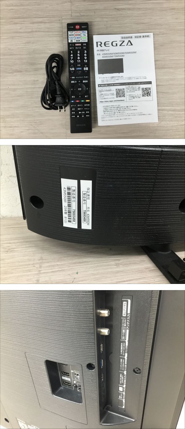 ●営TT424-200B 【稼働品】 TOSHIBA 東芝 REGZA レグザ 43M550M 43型テレビ 2025年製 取扱説明書・リモコン付き