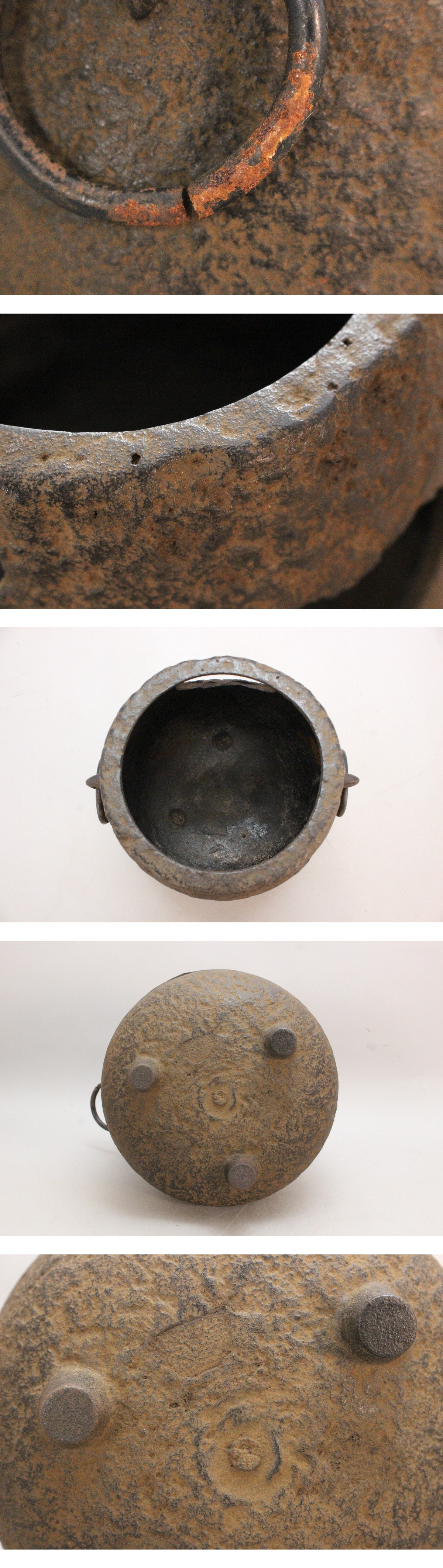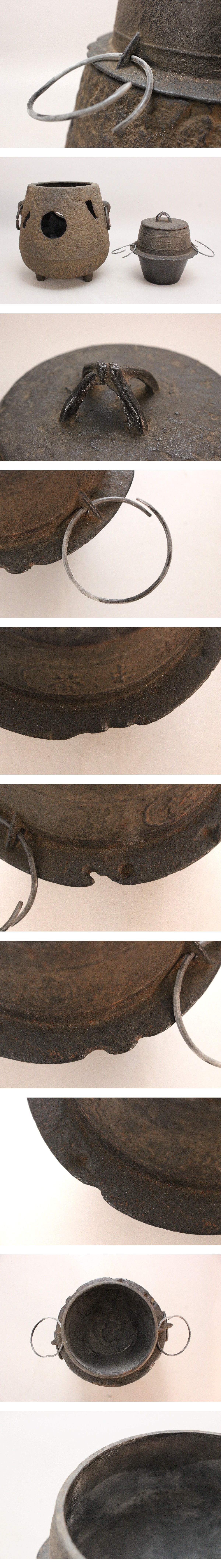 [1619100]あじろ鉄 槍垣風炉 飢来飯 湯来茶 茶釜 重量5kg 元箱付◆茶道具/茶器/風炉釜/鉄釜/湯沸かし/金工/鉄器/古美術/骨董/うぶ品