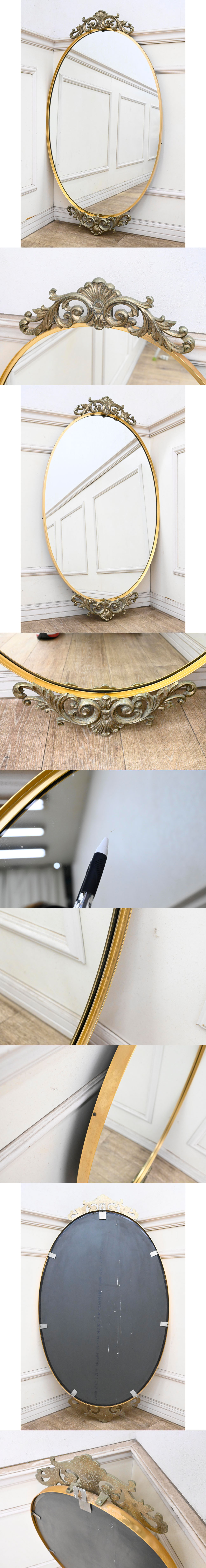 NF081 レトロ ロココ調 クラシック 金ゴールド 壁掛け鏡 ウォールミラー 真鍮飾 メタル製 姿見 全身ミラー