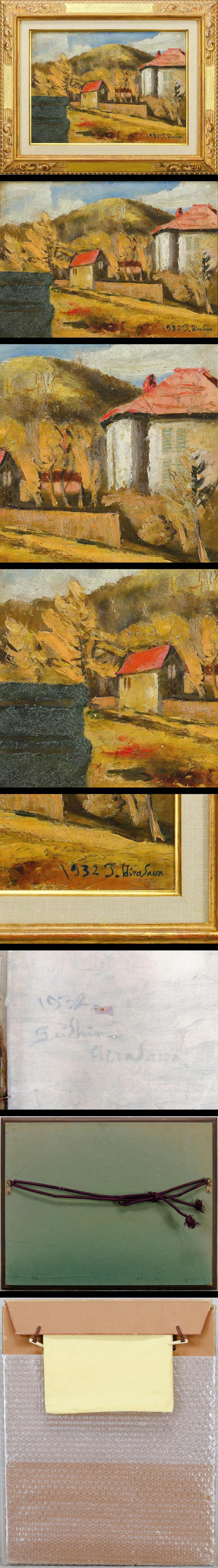 【WISH】サイン有:J.Hirasawa 油彩 4号 1932年作 ◆秋色に染まるヨーロッパの家並 古い作品 #25093157