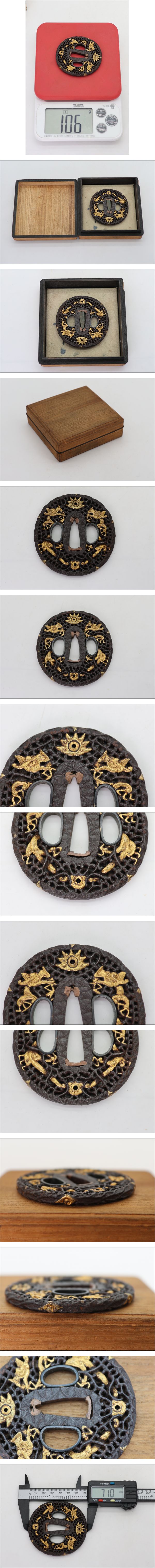 無銘 鉄鐔 金龍象嵌 京都 古埋忠 箱付 透かし鍔 古鐔 武具 刀装具③