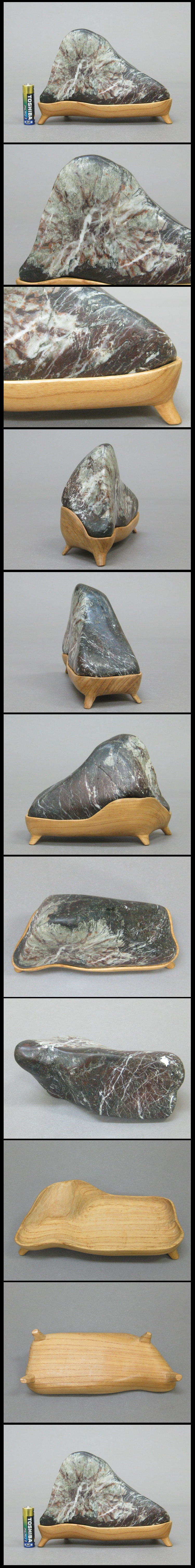 【心庵】鑑賞石 菊花石 台付 水石 天然石 重量1087g A1177