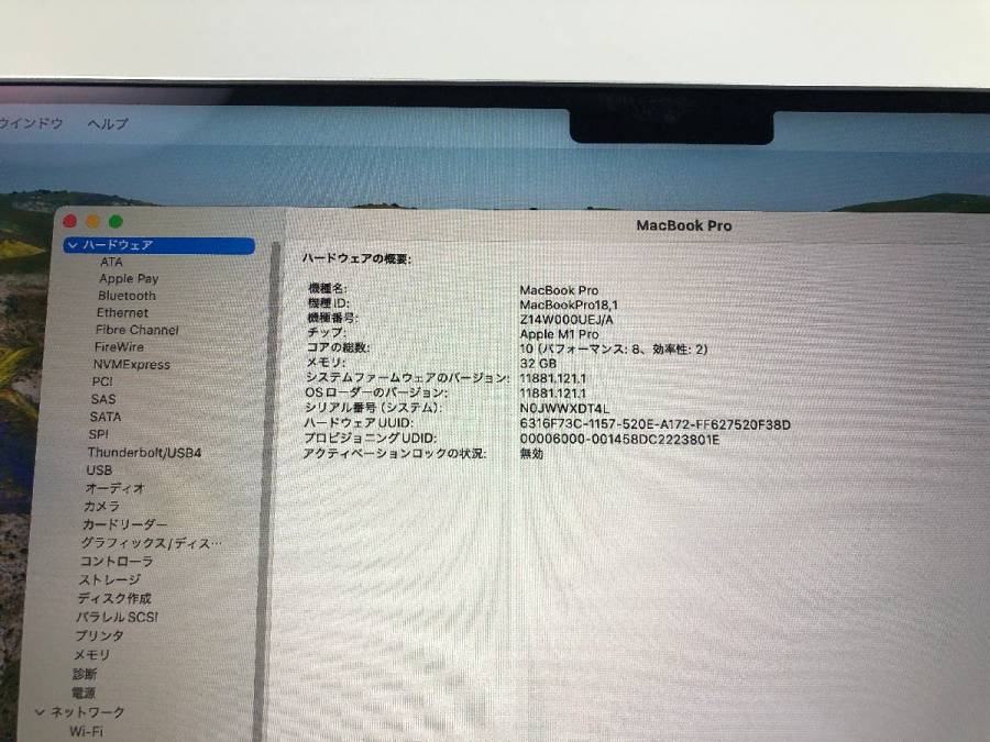 充放電回数2回 付属品未使用 Apple MacBook Pro 16インチ 2021 M1 Proチップ 10コアCPU 16コアGPU 32GB SSD1TB CTOモデル アップル Y09047