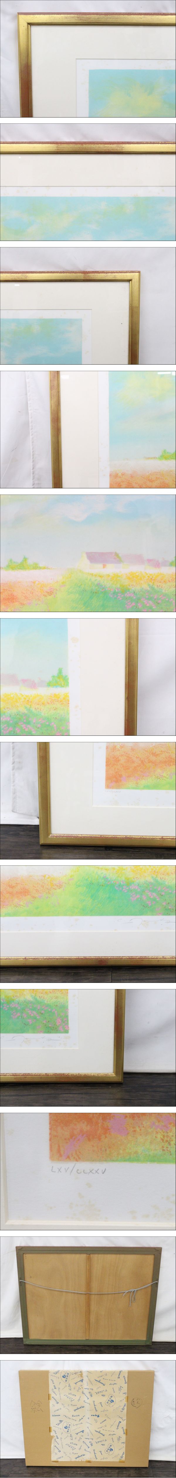 【行董】クロード・マヌキアン 花の中の家 リトグラフ 版画 LXV/CLXXV マット付き額装 約76cm×約58cm パステル調 フランス作家 AC000ABZ76