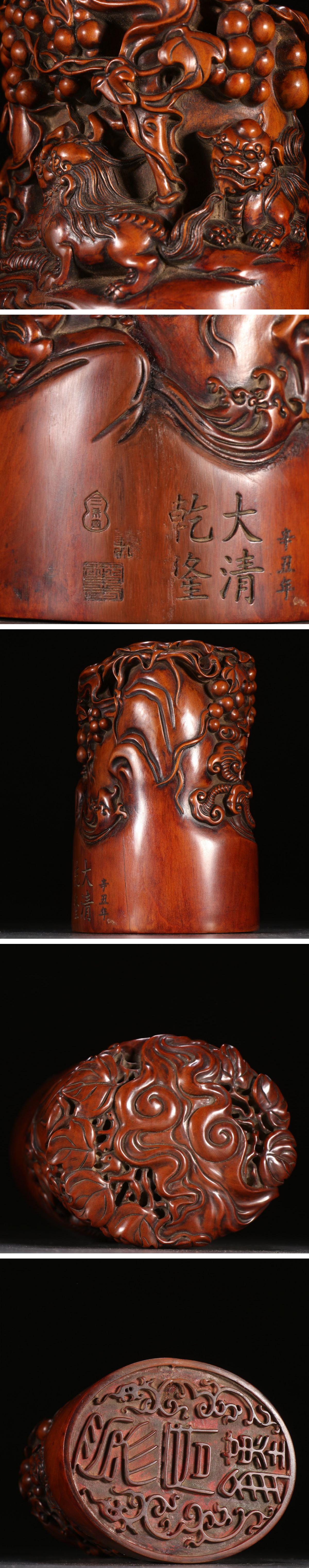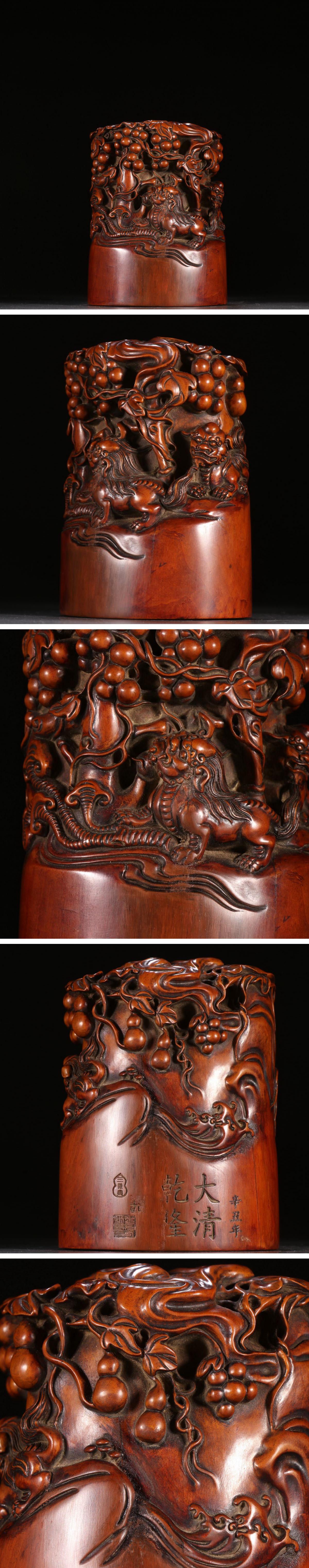 【清】某収集家放出品 清時代 黄花梨木雕 瑞獣紋印章 材質保証 当時物保証 中国伝来 当時物保証 古美術 骨董品7L9-BS15