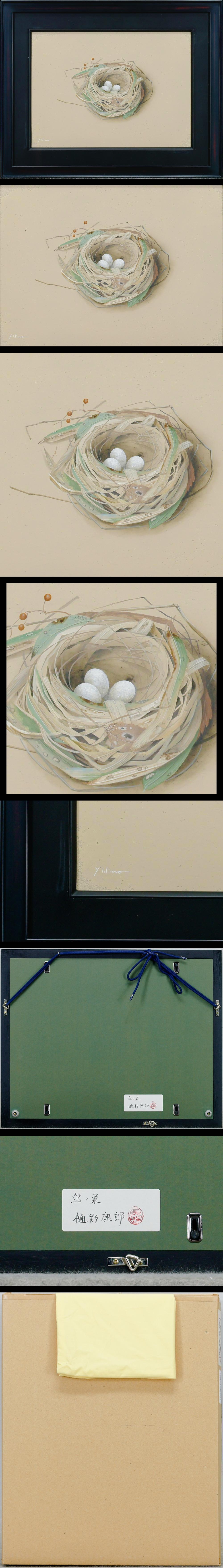【真作】【WISH】樋野康郎「鳥ノ巣」油彩 4号 共シール 静謐な巣籠る卵 〇元サロンドジュワン会員 師:福沢一郎 #25092471