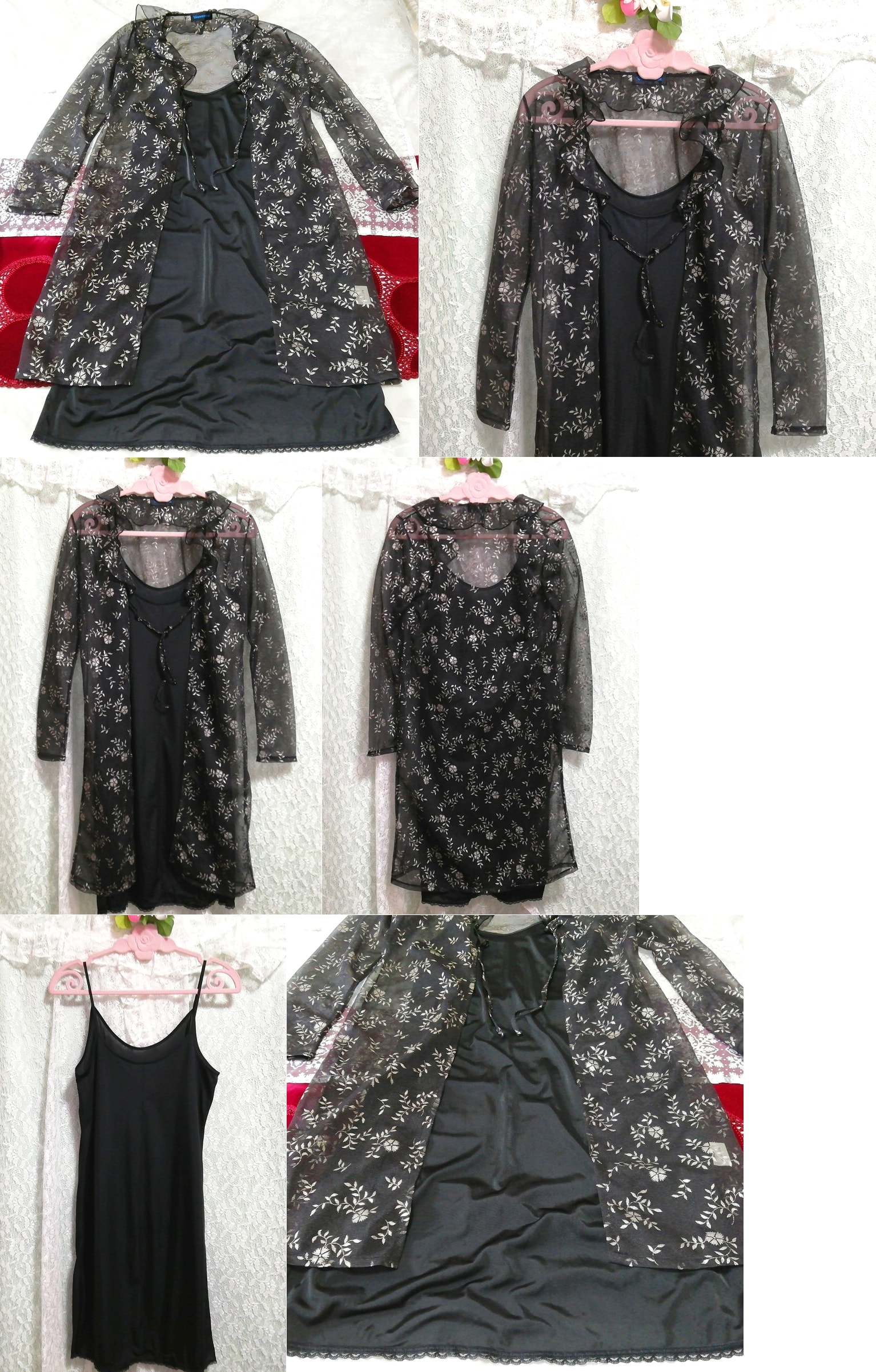 黒シースルー羽織ガウン ネグリジェ ナイトウェア キャミソールベビードールドレス 2P Black See-through gown negligee camisole dress
