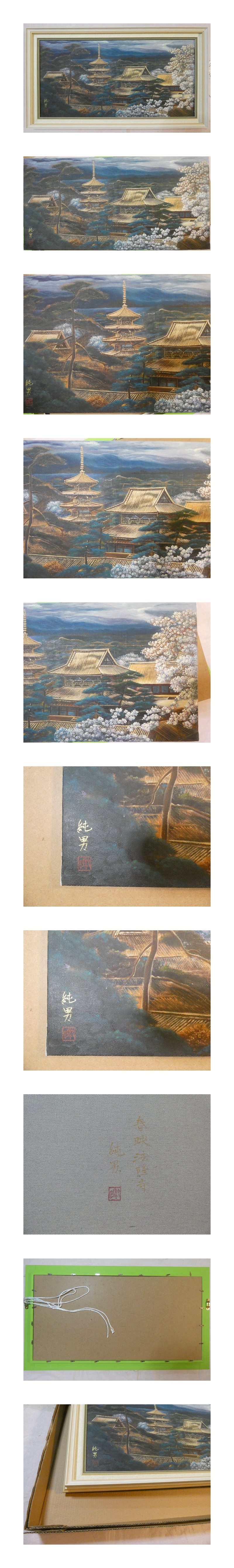 【模写】 大型絵画/ 風景 後藤純男『春映法隆寺』 サインあり / 額装/80×40cm