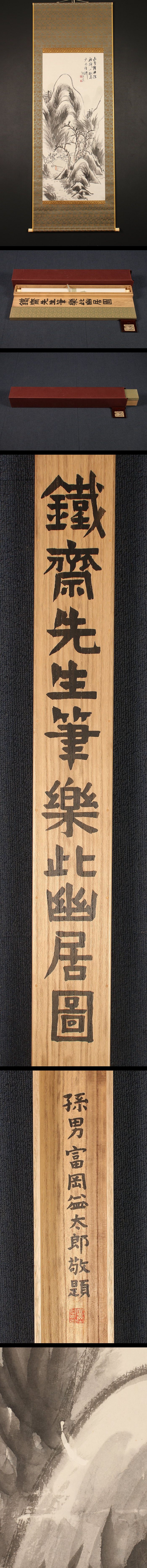 【模写】【伝来】am3881〈富岡鉄斎〉楽此幽居図 富岡益太郎極箱 二重箱 最後の文人画家 京都の人