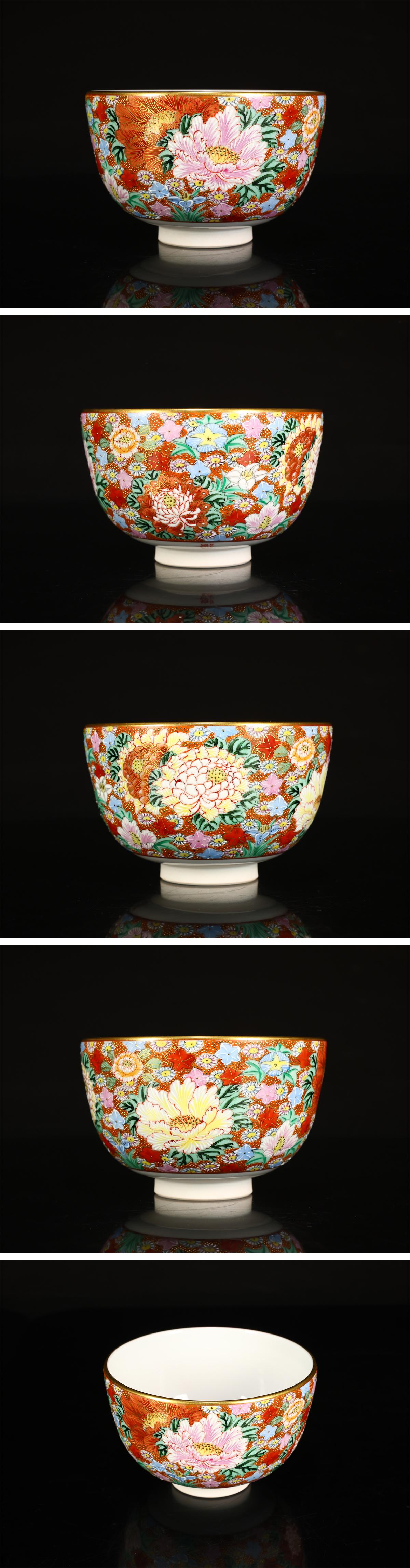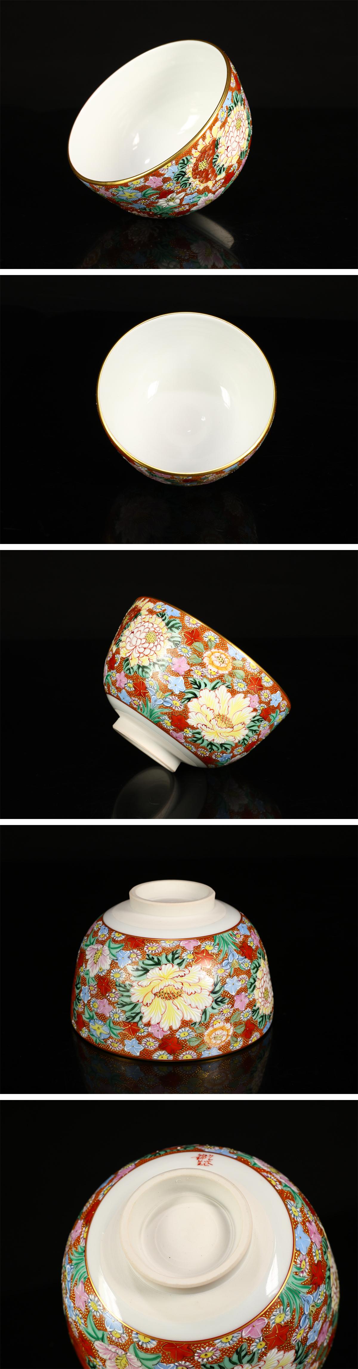 【吉】CN470 九谷名工 錦生窯 【本多順一】 金彩色絵百花金粒 茶碗/共箱付 本物保証 美品N!