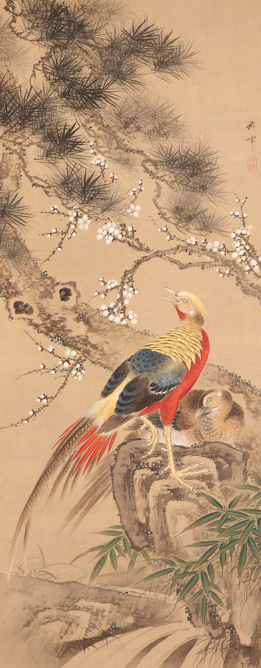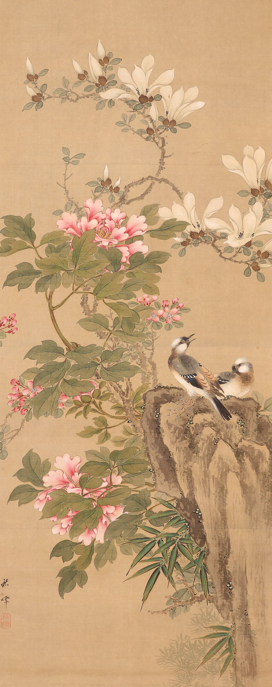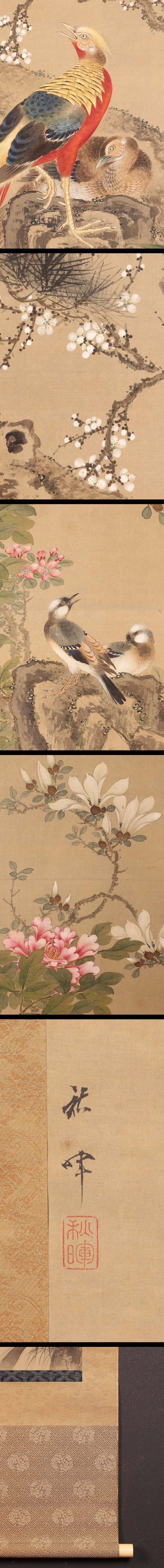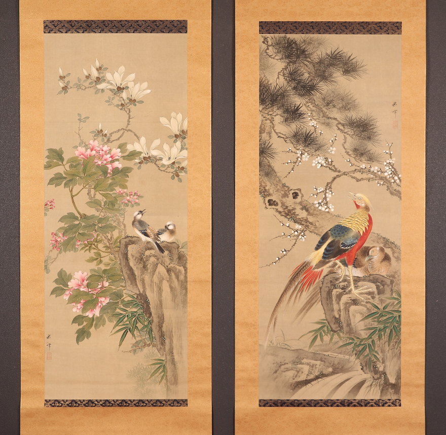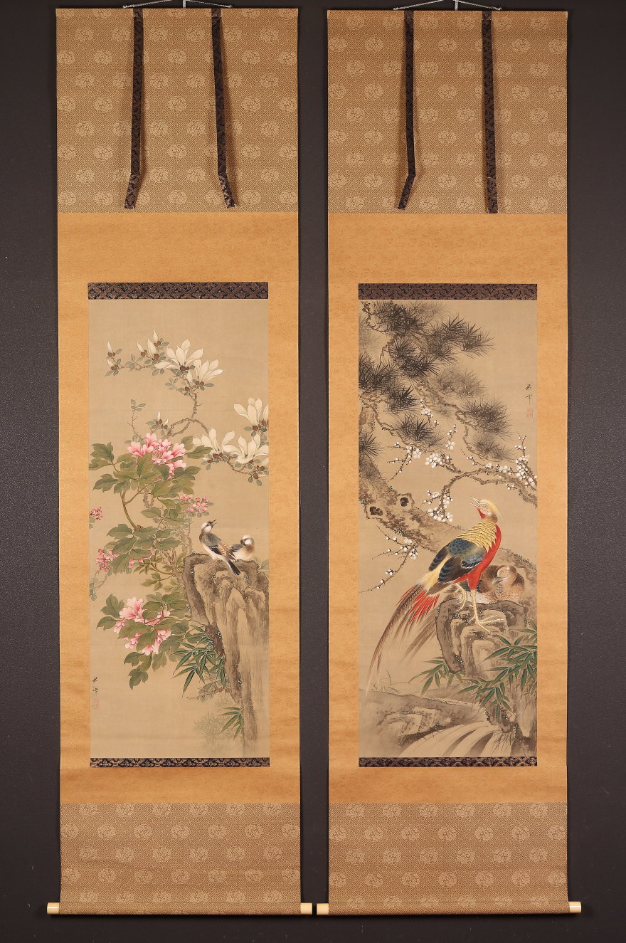 【模写】【伝来】am7351〈岡本秋暉〉双幅 花鳥図 渡辺崋山師事 江戸時代後期 東京の人