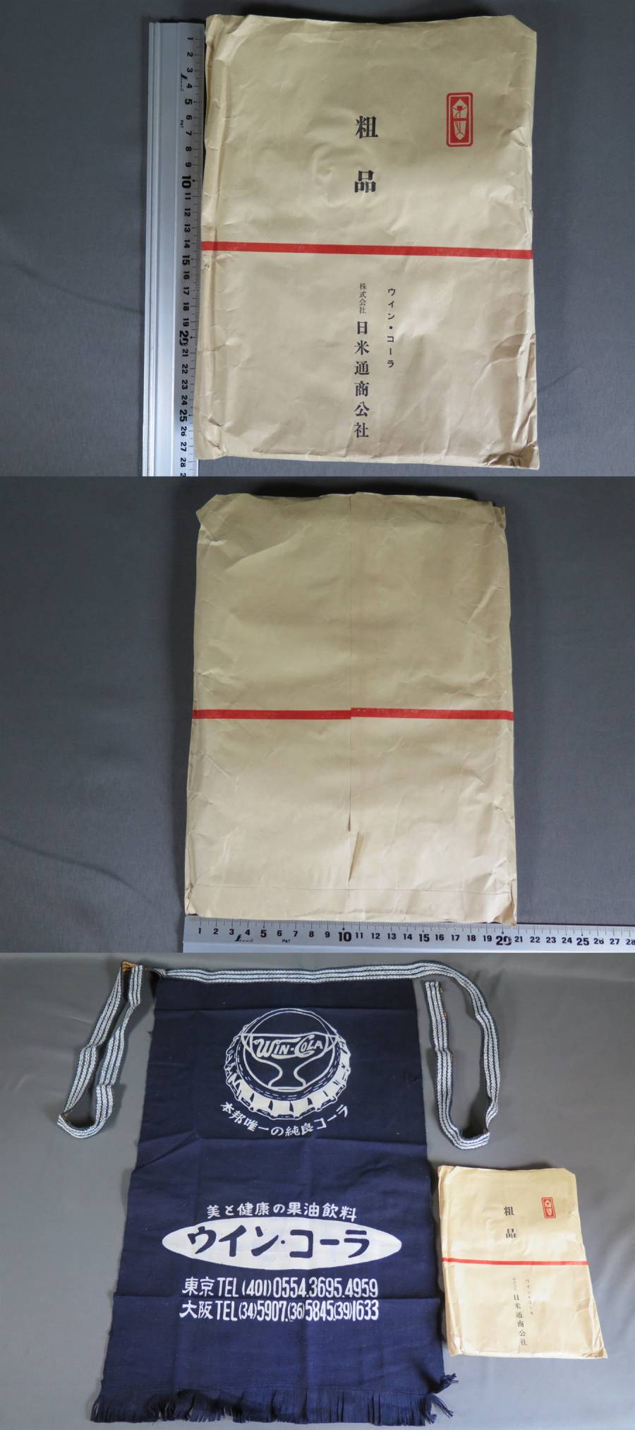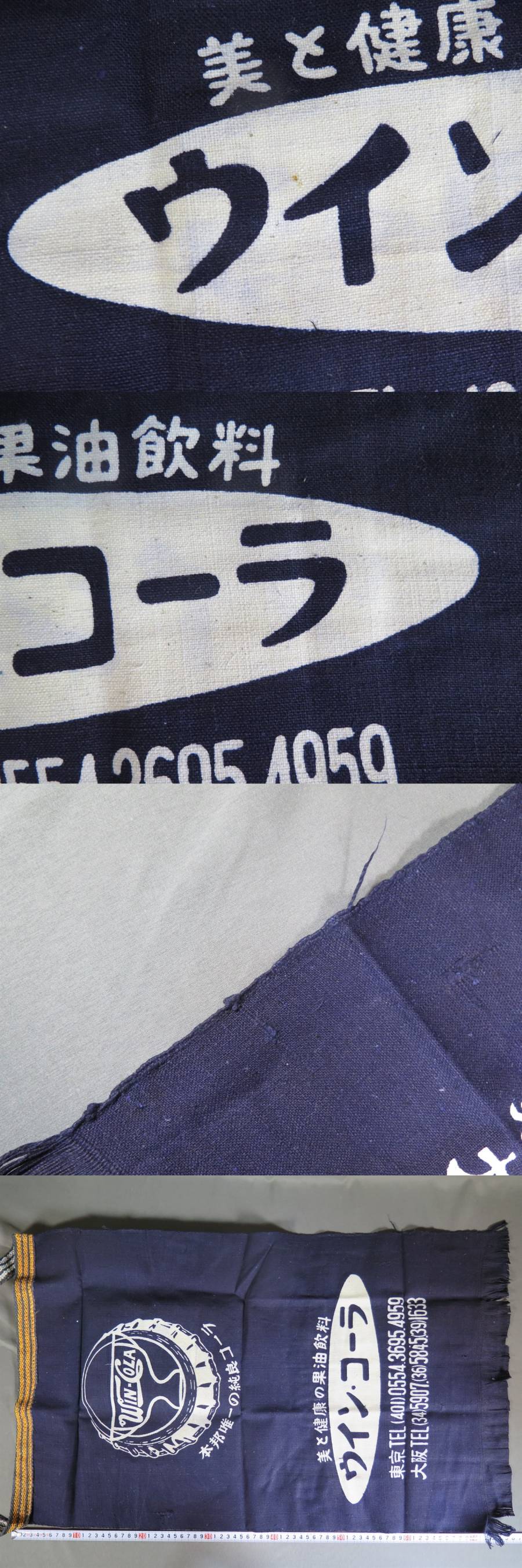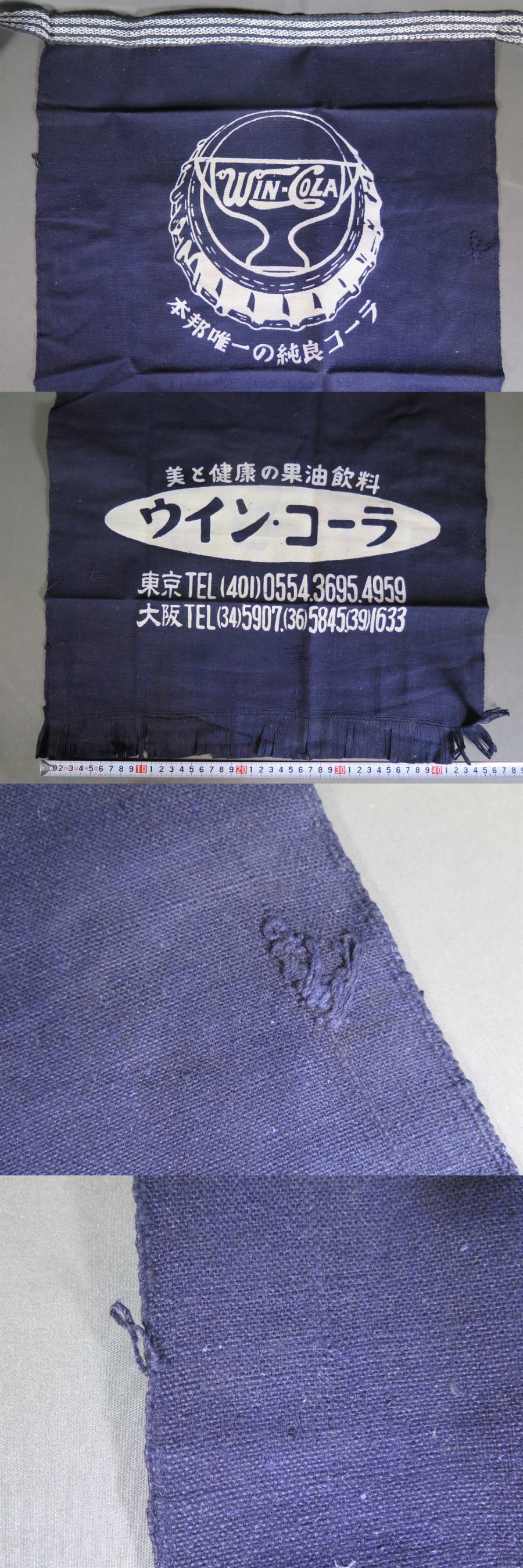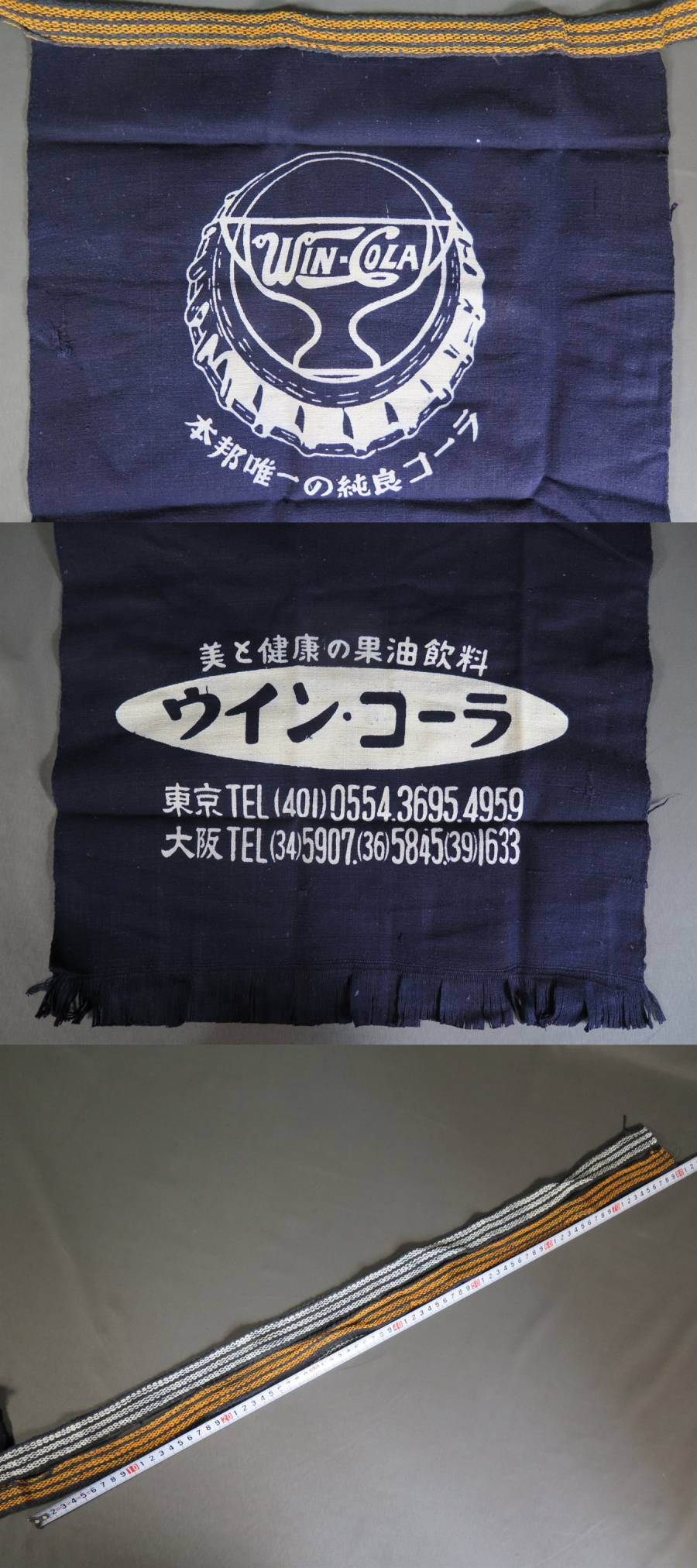 当時物 前掛け② ウイン・コーラ 日米通商公社 藍★昭和レトロ エプロン 粗品 Win-Cola 本邦唯一の純良コーラ 美と健康の果油飲料