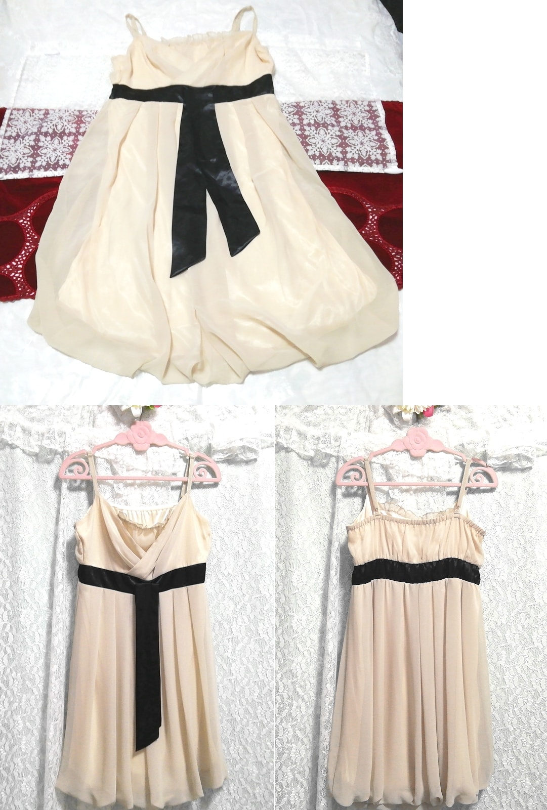 フローラルホワイト黒帯ネグリジェキャミソールワンピースシフォンドレス Floral white black belt negligee camisole chiffon dress