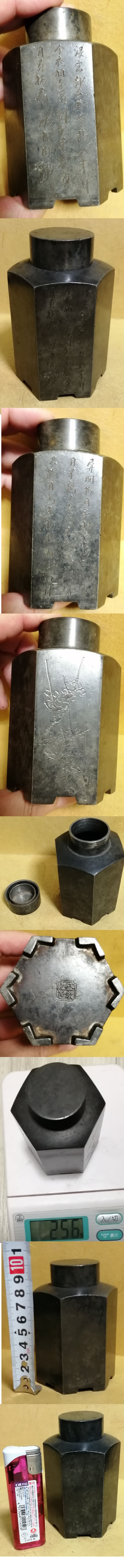 沈存周 古錫製 漢詩 人物彫 梅彫 唐詩 盛永興造 茶入 竹居 煎茶道具 唐物 錫 重さ256g