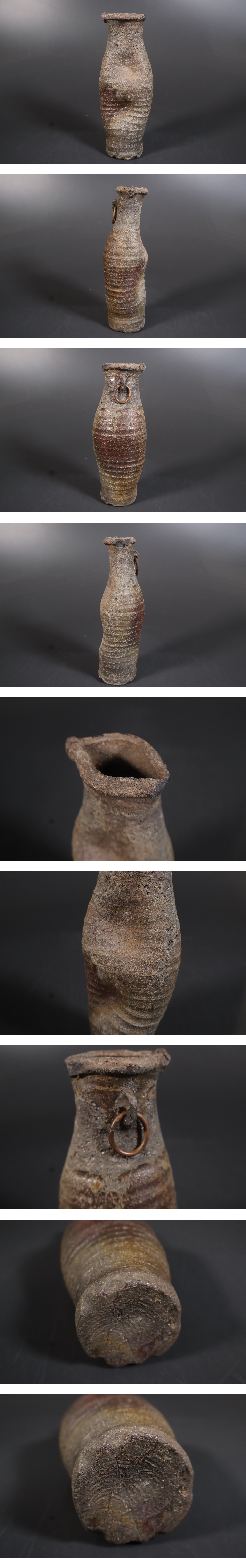 【和】(A3566) 時代古作 桃山江戸 古備前 南蛮写し花生 掛け花生