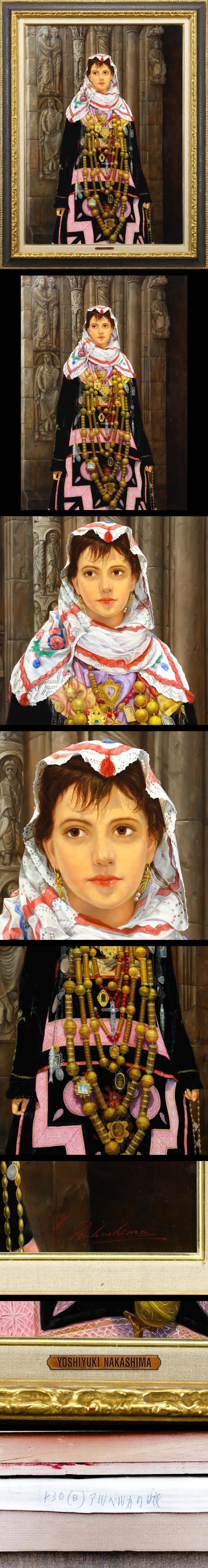 【真作】【WISH】中島義行「アルベルカの娘」油彩 30号 大作 ◆絢爛の装い異国の香り漂う民族美女 〇リアリズム人気画家 #25102749