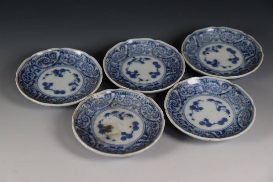 蔵出し品 古伊万里 時代 染付 蛸唐草文 小皿 5枚 A385