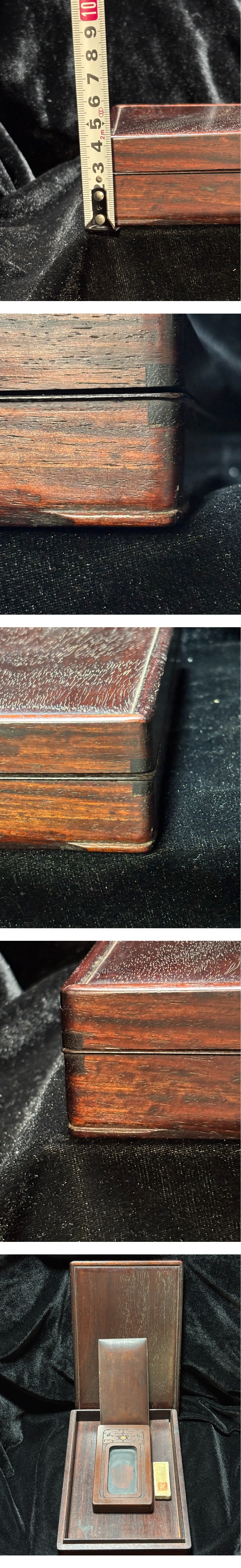 【サイズ】 硯箱 高さ約4.5cm 縦23cm 横15.8cm 重さ552g 硯 高さ約1.9cm 縦13.6cm 横7.6cm 重さ500g