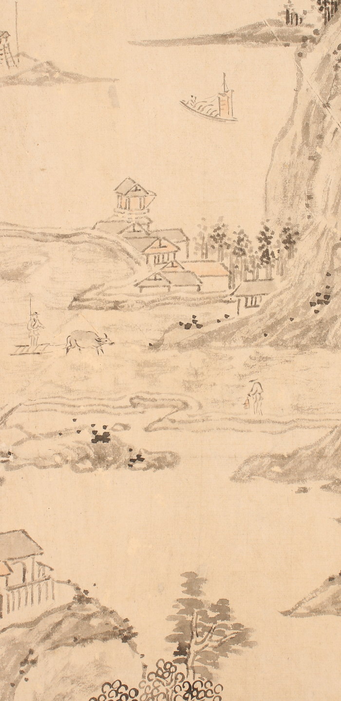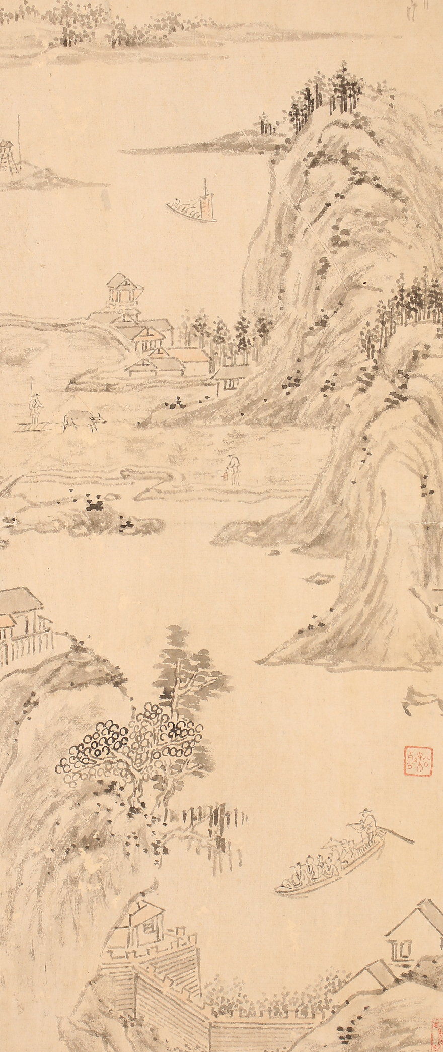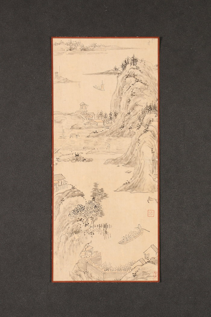 【模写】【伝来】am3852 山水図 中国 朝鮮 李朝 韓国 在印 マクリ